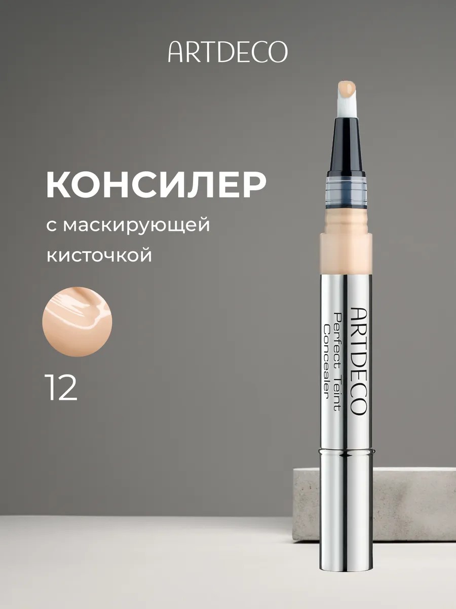 ARTDECO (АРТДЕКО) Консилер с кисточкой маскирующий тон 12, 1.8мл. Кремообразный консилер в удобной и практичной упаковке с дозатором и кистью позволяет максимально точно ретушировать недостатки лица. Влагостойкая формула, насыщенная светоотражающими пигментами, зрительно выравнивает и освежает кожу. Профессиональный совет: Наносите консилер на внутренний угол глаза при помощи кисти и припечатайте подушечками пальцев самое темное место под глазами, затем припудрите. Наносите консилер после тонального крема. Нанесите маскирующее средство на носогубные складки, под глаза и мягко растушуйте - больше ни чего не надо что бы освежить уставший макияж в конце дня! СПОСОБ ПРИМЕНЕНИЯ: Нанесите средство на те места, которые необходимо сделать светлее или замаскировать (круги вокруг глаз, носогубные складки, уголки губ, углы глаз), и равномерно распределите кончиками пальцев и кистью.