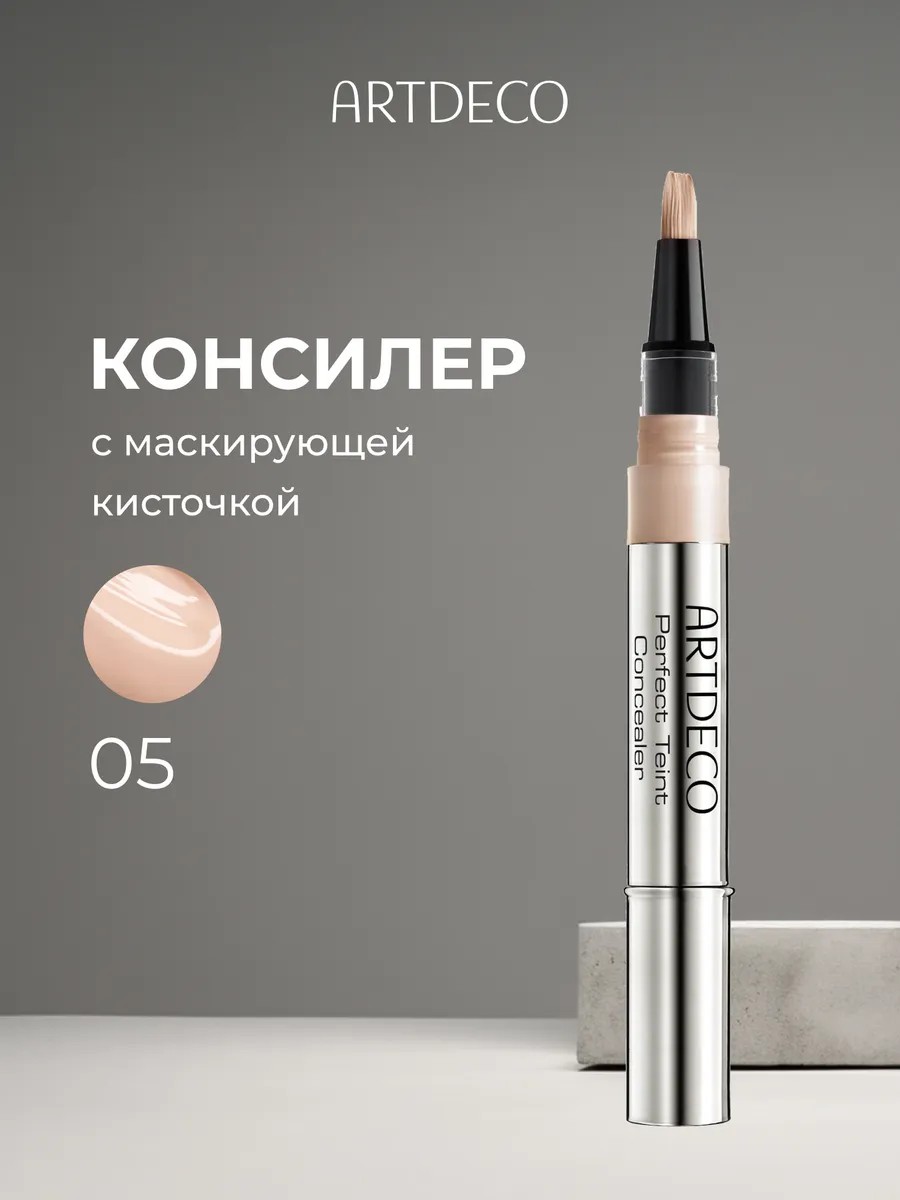 ARTDECO (АРТДЕКО) Консилер с кисточкой маскирующий тон 5, 1.8мл. Кремообразный консилер в удобной и практичной упаковке с дозатором и кистью позволяет максимально точно ретушировать недостатки лица. Влагостойкая формула, насыщенная светоотражающими пигментами, зрительно выравнивает и освежает кожу. Профессиональный совет: Наносите консилер на внутренний угол глаза при помощи кисти и припечатайте подушечками пальцев самое темное место под глазами, затем припудрите. Наносите консилер после тонального крема. Нанесите маскирующее средство на носогубные складки, под глаза и мягко растушуйте - больше ни чего не надо что бы освежить уставший макияж в конце дня! СПОСОБ ПРИМЕНЕНИЯ: Нанесите средство на те места, которые необходимо сделать светлее или замаскировать (круги вокруг глаз, носогубные складки, уголки губ, углы глаз), и равномерно распределите кончиками пальцев и кистью.