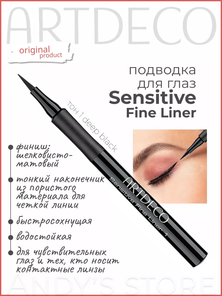 Sensitive Fine Liner от Artdeco – водостойкое средство. Это препятствует размазыванию макияжа на протяжении дня, а также попадания его частиц на слизистую. Подводка идеально подойдет для чувствительных глаз и для тех девушек и женщин, которые носят контактные линзы.