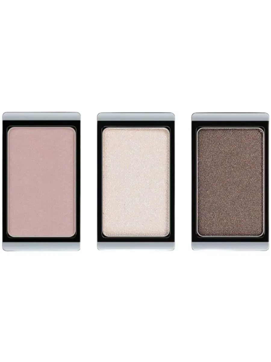 Artdeco, набор теней для макияжа глаз. Тени для век перламутровые, тон 17 pearly misty wood, 0,8 г, текстура теней для век мягкая и деликатная в нанесении, обладает хорошей стойкостью и высокой яркостью цвета. Тени создают мерцающий жемчужный блеск на веках. Тени для век с блестками тон 372 glam natural skin, 0,8 г, пудровая текстура теней для век мягкая и деликатная в нанесении, обладает хорошей стойкостью и высокой яркостью цвета. Мерцающие частицы отражают свет, за счёт этого ты получаешь несравненную игру цветов с мерцающими эффектами на твоих веках. Тени для век матовые, тон 538 matt nude blush 0,8г, текстура теней для век мягкая и деликатная в нанесении, обладает хорошей стойкостью и высокой яркостью цвета. Матовые цвета отличаются особой нежностью и шелковистостью.