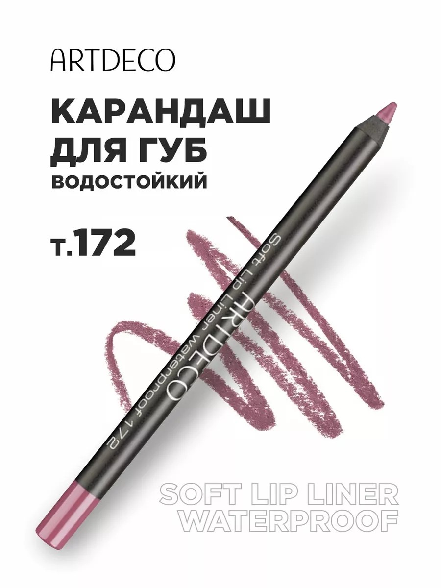 ARTDECO Карандаш для губ Soft Lip Liner водостойкий, тон 172 cool mauve. Карандаш для губ нюдовый Soft Lip Liner от ART DECO - это идеальное средство для создания стойкого и аккуратного макияжа губ. Водостойкая формула позволяет сохранить макияж в идеальном состоянии на протяжении всего дня, а широкая палитра оттенков поможет подобрать идеальный вариант для любого типа внешности. Профессиональный карандаш для губ розовый от Артдеко станет незаменимым помощником для визажистов и любителей макияжа. С его помощью можно создать как вечерний, так и повседневный образ, подчеркнуть красоту губ и добавить им объема. Карандаш для губ матовый артдеко станет незаменимым средством в косметичке любой девушки или профессионального визажиста. Карандаш для губ стойкий Lip Liner подойдет для всех типов кожи и волос - от блондинки до рыжей, от брюнетки до шатенки. Используя карандаш для губ нюд ARTDECO, вы сможете подчеркнуть красоту своих губ и создать неповторимый образ каждый день. Наслаждайтесь широким выбором оттенков и создавайте неповторимые образы вместе с профессиональной косметикой Арт деко! Специально разработанная формула мягкого карандаша темного Soft Lip Liner делает его необыкновенно стойким. После высыхания он становится устойчивым к стиранию и к воде, что препятствует растеканию губной помады. Приятная кремообразная консистенция обеспечивает легкое и точное нанесение. Сразу после нанесения карандаш для губ водостойкий Soft Lip Liner хорошо стирается и характеризуется оптимальной цветопередачей и высокой плотностью покрытия. Содержит натуральные антиоксиданты и витамин Е. Не содержит парфюмированных отдушек. Объём: 1,2г.