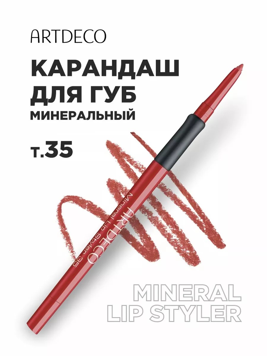 ARTDECO Карандаш для губ автоматический с минералами Mineral Lip Styler, тон 35 mineral rose red. Карандаш для губ стойкий - отличное средство для создания идеального макияжа губ, основанное на инновационной механике. Тонкий стержень и практичная трубочка-держатель позволяют провести идеальную линию и привлекают аккуратным нанесением и создаваемым чувством комфорта. Карандаш для губ матовый механический не сушит губы. Хорошая стойкость карандаша для губ гелевого Mineral Lip Styler препятствует растеканию губной помады и таким образом обеспечивает создание идеального макияжа губ. Стержень без проблем возвращается в исходное положение, встроенная точилка обеспечивает необходимую форму кончика стержня. Гиалуроновая кислота увлажняет, канделильский воск позволяет стержню мягко скользить по коже, а слюда улучшает нанесение и придает шелковистый блеск. Не содержит минералов, парабенов и парфюмированных отдушек. Объём: 0,4г.