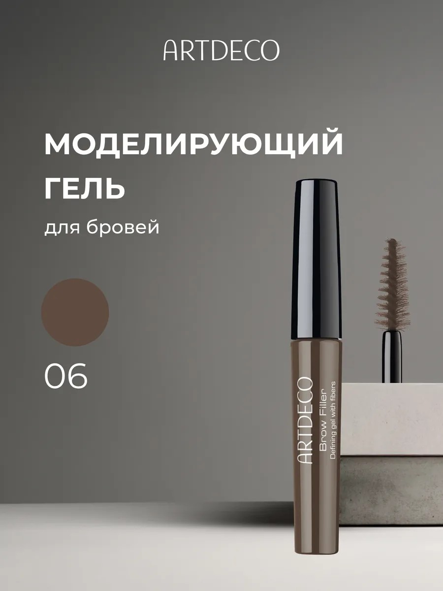 ARTDECO (ARTDECO) Brow Filler Shaping Gel, Shade 6.7 ml. This ARTDECO eyebrow filler gel with a brush is a versatile product for adding thickness, a well-groomed appearance, and creating a neat, natural shape. The formula includes special microfibers that fill in gaps and add volume. Caring ingredients support the natural beauty and health of eyebrows: argan oil nourishes and moisturizes; ginseng root extract stimulates rapid growth and strengthens hairs; vitamins A and E prevent hair loss. A specially designed brush makes application especially convenient. The gel's light consistency allows you to direct hairs and securely hold them in place. The product lasts all day, ensuring your eyebrows retain their shape and rich color in any conditions. HOW TO USE: Apply the gel to your eyebrows using the brush, combing through the hairs. Create the desired shape.