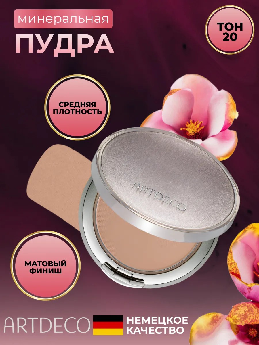 ARTDECO Пудра компактная минеральная тон 20, 9 г. песочно-бежевый