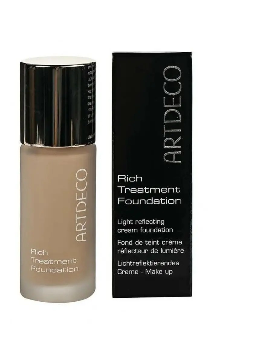 Artdeco Тональная основа Rich Treatment, тон 28 фарфоровый, 20 мл. Этот роскошный тональный крем со светоотражающими пигментами оптически скрывает небольшие дефекты, такие как небольшие морщинки и неровности кожи, и придает коже безупречный, сияющий цвет. Тональный крем со средней и высокой плотностью покрытия долго держится, образует гладкий и бархатистый слой и оставляет необыкновенно приятное ощущение на коже. Активный компонент сквалан разглаживает кожу, а UV-фильтры защищают от негативного влияния окружающей среды. Подходит для нормальной, сухой и чувствительной кожи.Состав: aqua (water), cyclopentasiloxane, talc, glycerin, squalane, titanium dioxide (nano), peg/ppg-25/25 dimethicone, stearalkonium bentonite, zinc oxide (nano), magnesium sulfate, dimethicone, c12-14 pareth-3, methylparaben, sorbitan sesquioleate, aluminum hydroxide, cetyl ethylhexanoate, methicone, butylparaben, tocopherol, hydrogen dimethicone, aluminum starch octenylsuccinate, lauroyl lysine, polyethylene, parfum (fragrance), butylene glycol, trimethyl siloxysilicate, alcohol, silica, butylphenyl methylpropional, gentiana lutea root extract, hydrogenated lecithin, morus alba root extract, sodium hyaluronate, glycyrrhiza inflata root extract, [+/- (may contain) mica, ci 77491 (iron oxides), ci 77492 (iron oxides), ci 77499 (iron oxides), ci 77891 (titanium dioxide).