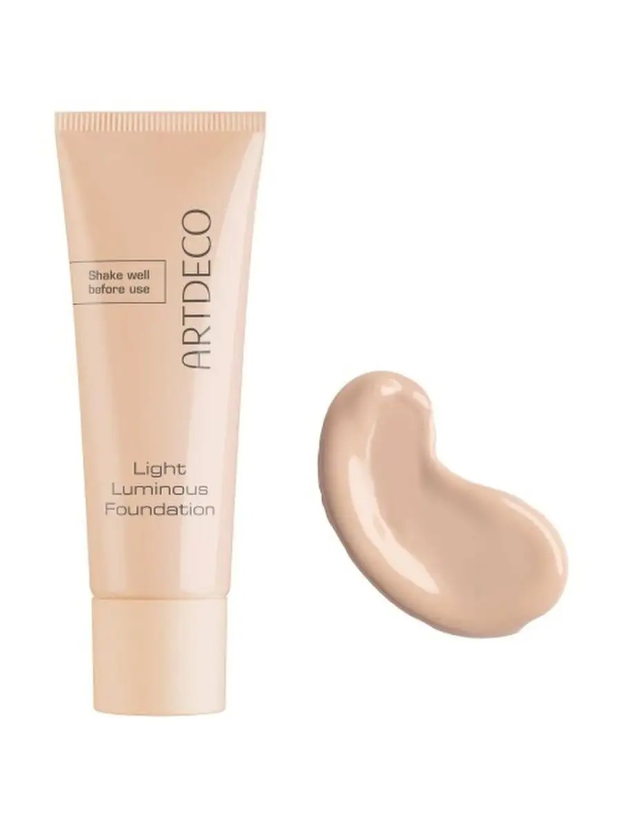 Artdeco Light Luminous Foundation, Shade 14 Beige, 25 ml. Artdeco Luminous Foundation, a liquid, translucent foundation, adds natural color to the complexion and conceals imperfections. Contains up to 90% naturally derived ingredients. The light, breathable texture of this moisturizing Luminous Foundation creates a seamless, natural makeup look. The Blue Light Protection formula protects skin from premature aging, reduces signs of fatigue, and maintains a fresh appearance throughout the day. Light Luminous Foundation offers medium coverage, allowing it to adapt to your skin tone without creating a mask-like effect. Its breathable, silky texture melts into the skin, giving it a natural, even, and radiant appearance. Ingredients: aqua (water), c9-12 alkane, glycerin, coco-caprylate/caprate, propanediol, squalane, pentylene glycol, disteardimonium hectorite, polyglyceryl-3 polyricinoleate, sorbitan isostearate, ethyl oleate, ethyl stearate, simmondsia chinensis (jojoba) seed oil, glyceryl caprylate/caprate, aluminum hydroxide, butyrospermum parkii (shea) butter unsaponifiables, ethyl linoleate, xanthan gum, ethyl palmitate, avena sativa (oat) kernel oil, sodium lauroyl glutamate, bacillus ferment, lysine, magnesium chloride, glucose, tocopherol, hydrolyzed pea protein, sodium chloride, sodium succinate, citric acid, ci 77491 (iron oxides), ci 77492 (iron oxides), ci 77499 (iron oxides), ci 77891 (titanium dioxide).
