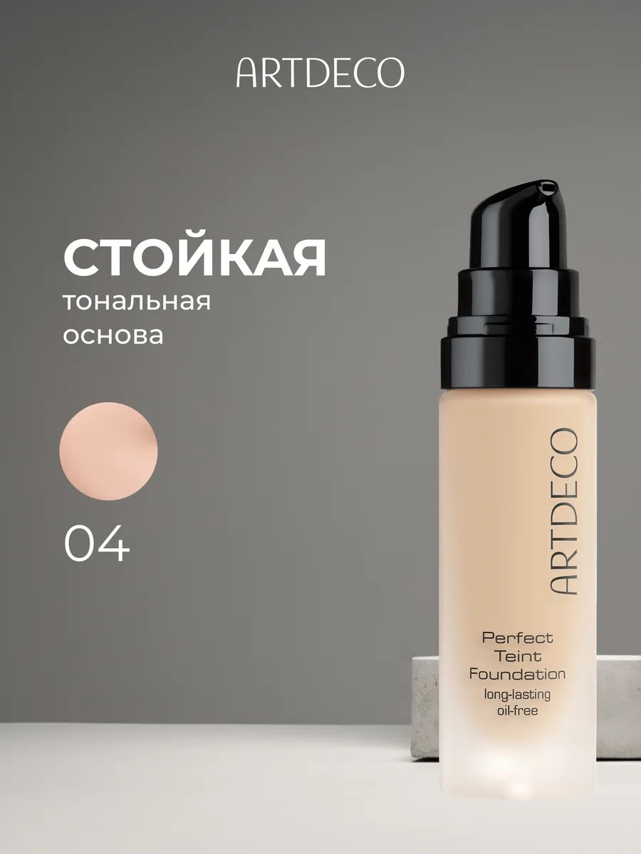 ARTDECO (ARTDECO) Perfect Tient Foundation, shade 04, 20 ml. Long-lasting foundation with excellent coverage, without oils and parabens. The feather-light texture contains oil-absorbing particles, thanks to which your skin will remain matte and your complexion perfectly even all day long. Caring ingredients such as hyaluronic acid, bisabolol and peach extract smooth the skin's surface and fill it with health. Even, radiant skin without a mask effect! HOW TO USE: Cleanse your skin, apply a cream suitable for your skin type and let it absorb. Apply a small amount of foundation with your fingertips using patting movements, then blend it with smoothing strokes from the center of the face outward. For more dense coverage, use a foundation brush.