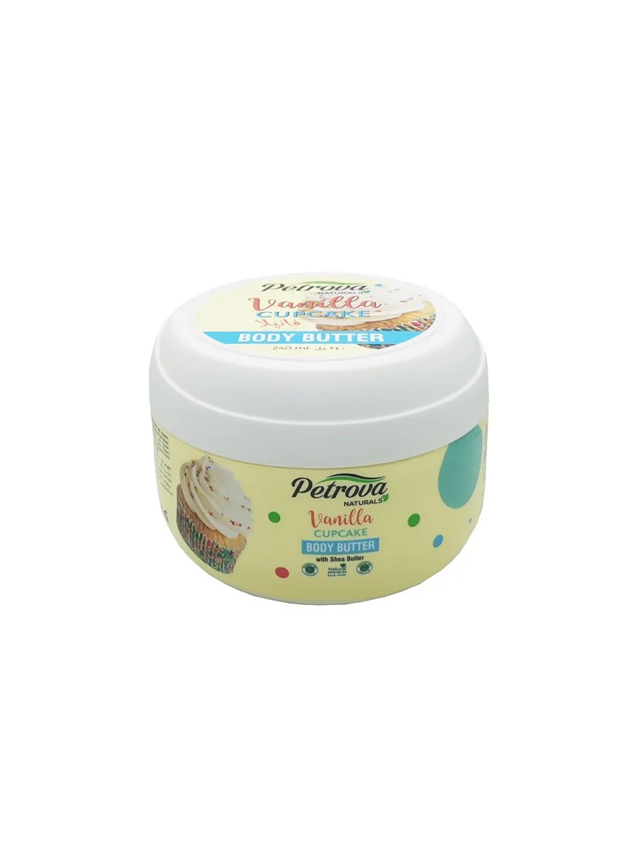 PETROVA NATURALS Vanilla Cupcake Body Butter Cream with Shea Butter, Vanilla, and Aloe Extracts (240 ml) is suitable for all skin types.