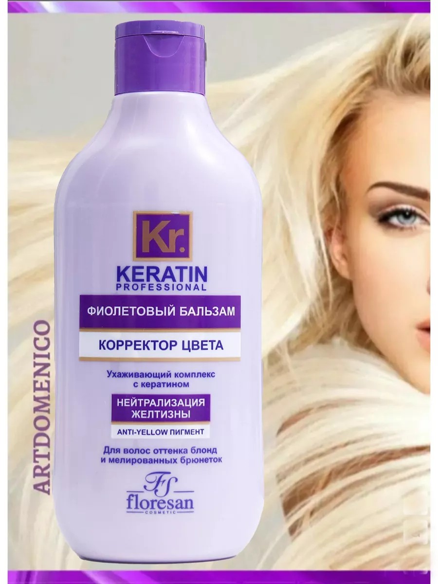 Волосы оттенка блонд, обесцвеченные или седые, а так же мелированные блондинки и брюнетки могут страдать от желтизны и рыжины. Фиолетовый бальзам оживляет цвет и ухаживает за натуральными светлыми или окрашенными в блонд и мелированными волосами. Бальзам содержит специальный фиолетовый пигмент-тонер, который борется с желтизной, нейтрализуя жёлтые и медные оттенки, а также освежает и восстанавливает яркость и блеск блондированных волос. Специальный ухаживающий комплекс с кератином предотвращает сухость и ломкость, способствует увлажнению, повышению упругости волос. anti-yellow пигмент;