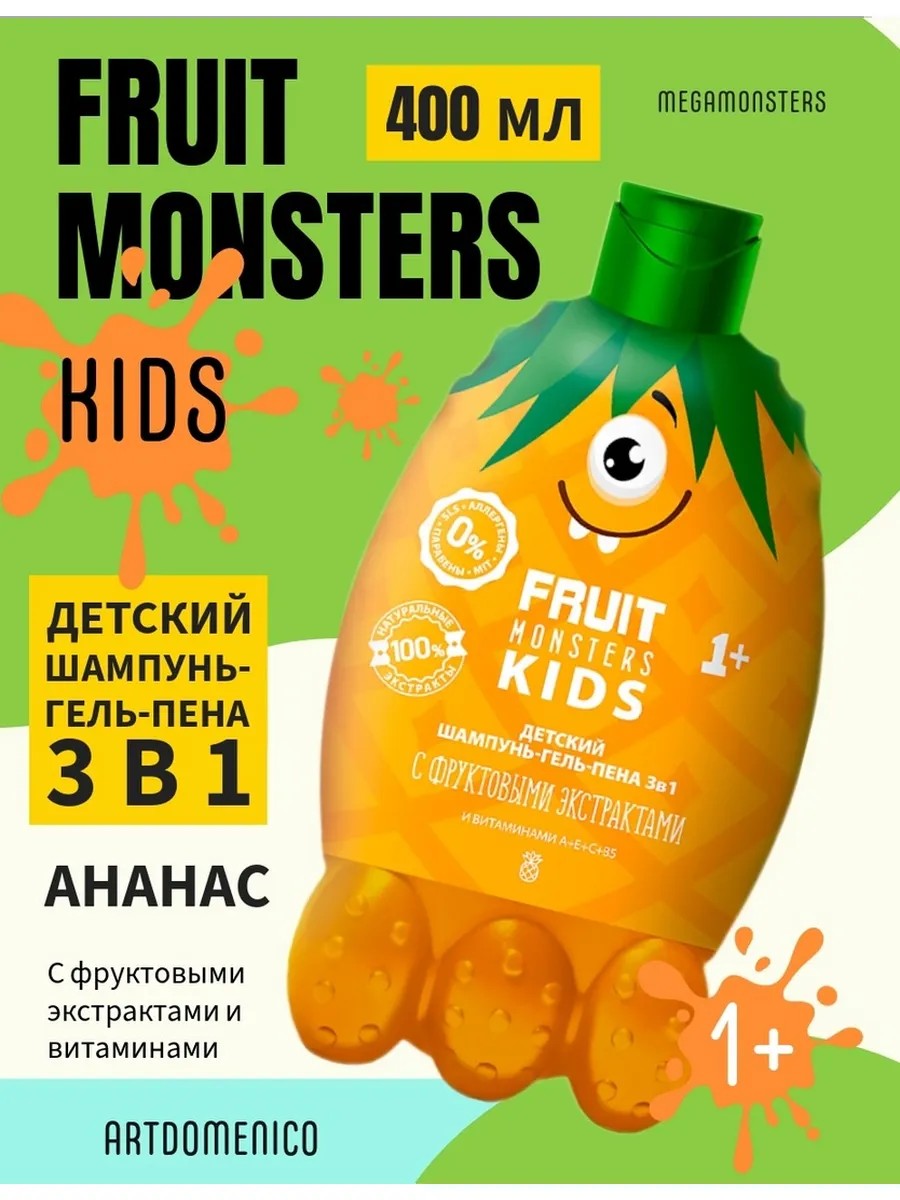 Artdomenico Фрутомонстры Шампунь-гель-пена 3в1 детский Ананас 400мл