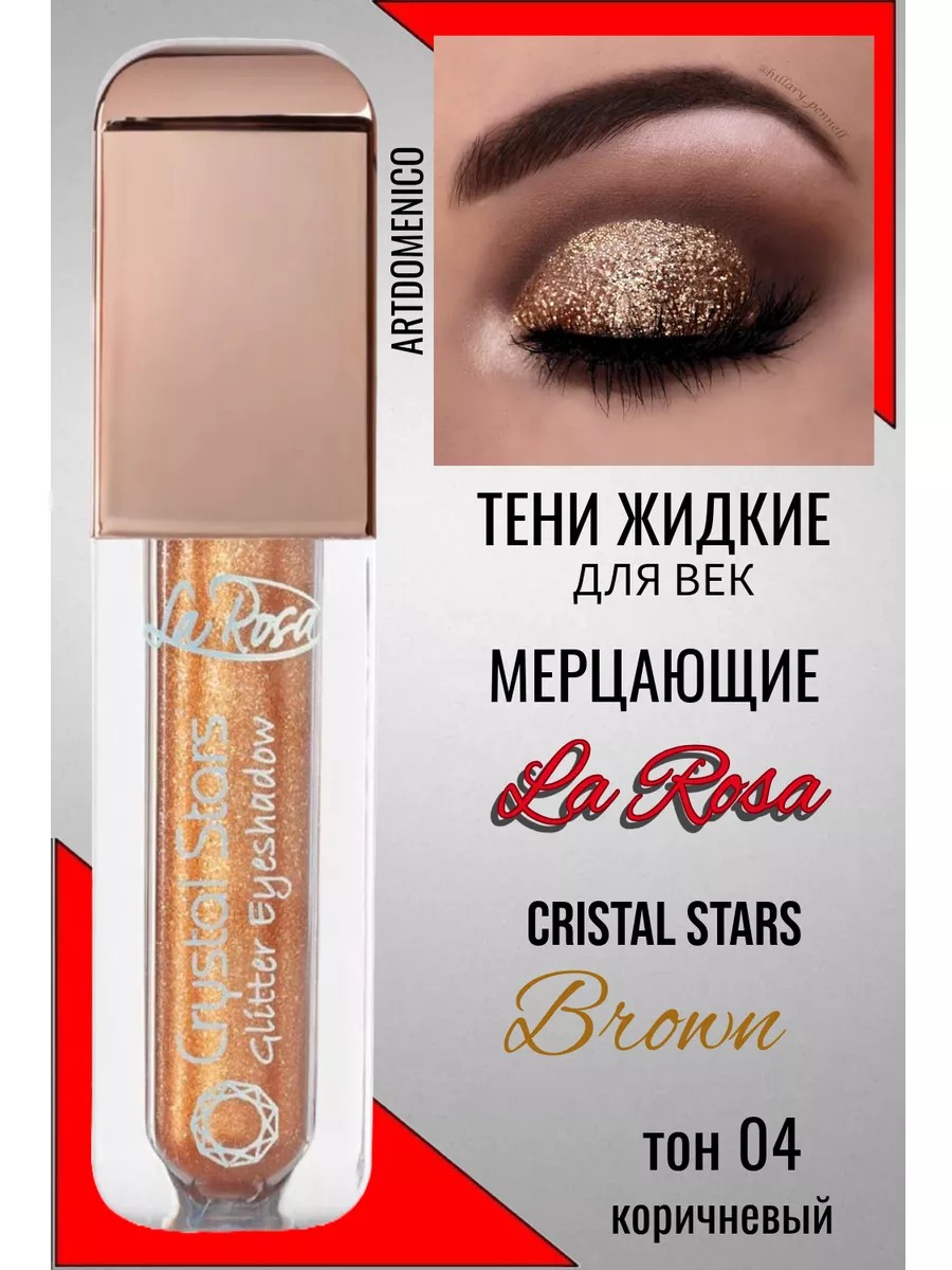 Жидкие тени для век мерцающие La Rosa Cristal Stars Brown Моно-тени актуальных оттенков позволят создать стильный макияж глаз для любого случая – сдержанный офисный, повседневный, романтичный, роскошный вечерний, для фотосессий.
