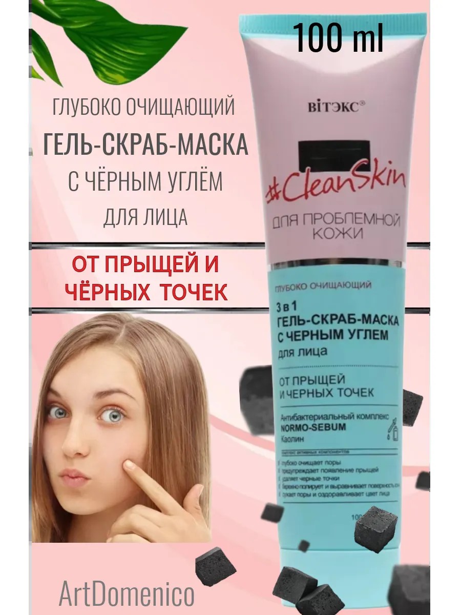 Artdomenico Витекс Clean Skin гель-скраб-маска с черным углем 100мл