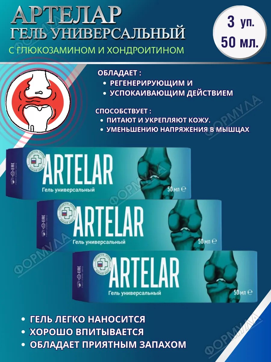 Артелар Гель универсальный с глюкозамином для суставов 50мл.*3шт