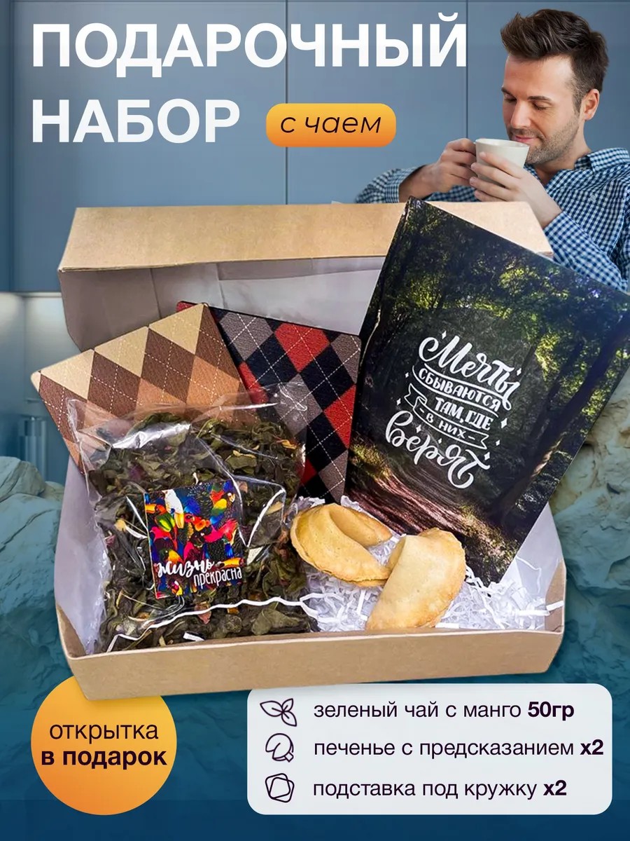 Ideas for various occasions include February 23rd, March 8th, Christmas, or Valentine's Day. This unusual tea box will be appreciated by a director, manager, or boss. The set includes delicious teas with different flavors, including green and mango—all of which brew perfectly in a teapot.