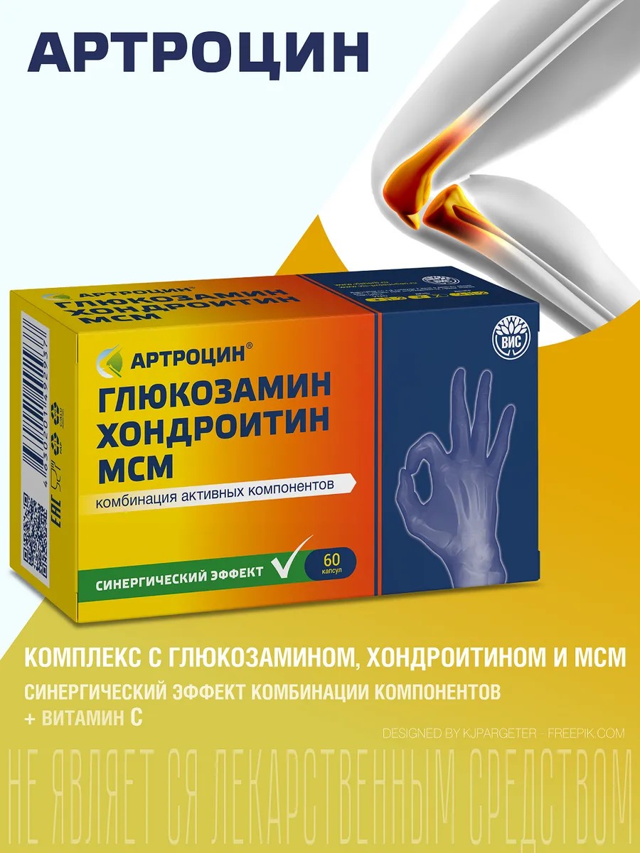 Артроцин Глюкозамин МСМ – комплекс питательных веществ для поддержки функционального состояния суставов.