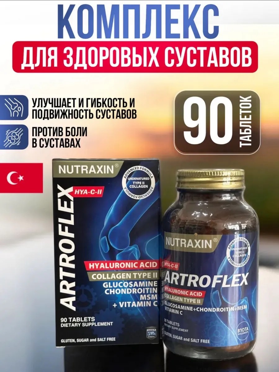 Nutraxin Arthroflex Hya C-II is a specially developed balanced formula of a dietary supplement from the glucosamine series, which contains 6 active ingredients that affect phosphorus-calcium metabolism in cartilage tissue, slow down the destruction of bone tissue, inhibit the process of cartilage degeneration, normalize synovial fluid, improve joint mobility, are necessary for the reproduction of the main substance of bone and cartilage tissue, provide building material for cartilage, promote the formation of connective tissue of the joint - ligaments and tendons.