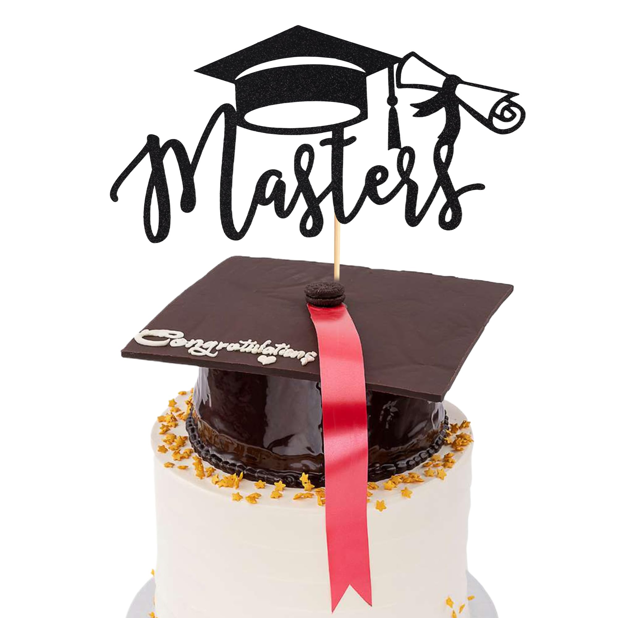 Arthsdite 1Pc Masters Cake Topper 2024 Graduation Cake Topper Congrats Grad Cake Decorations Masters Graduation Party Decorations Supplies - Black Glitter Black Masters Cake Topper