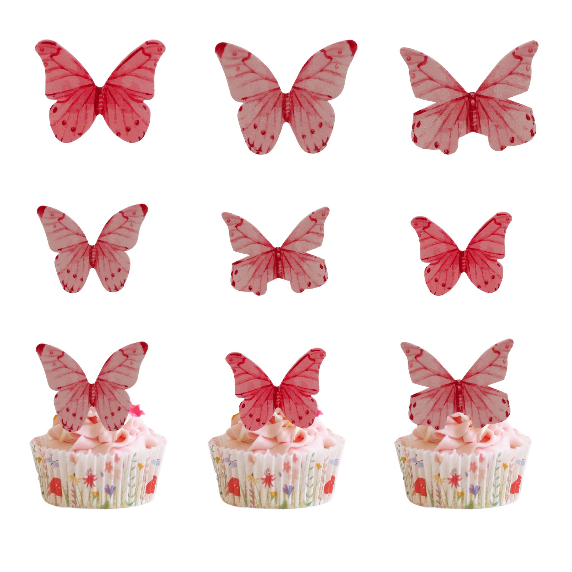 Arthsdite 40Pcs Edible Wafer Paper Butterfly Cupcake Toppers 3D Cake Realistic Pastel Butterfly Decoration for Birthday Party Wedding Food Decorations - Pink Pink 2