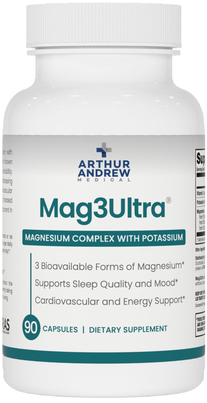 Arthur Andrew Medical Mag3Ultra Triple Magnesium Supplement Sucrosomial Bisglycinate Taurate for Muscle Stress Mood Nerve Bone & Heart Support 90 Capsules