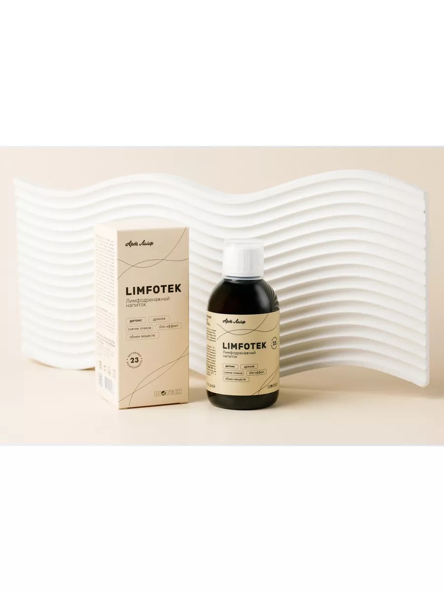 Лимфотек - Детокс. Дренаж. Снятие отеков. Slim-эффект! Здоровье лимфатической системы – важнейший фактор долголетия, молодости и профилактики болезней. Именно лимфа защищает органы и кровеносные сосуды организма от продуктов клеточного распада и токсинов, а также осуществляет поддержку его эффективной работы.Поддержка оптимального тока лимфы укрепляет иммунитет, сводит к минимуму риски воспалительных процессов, замедляет процессы старения, способствует предотвращению заболеваний, в т.ч. онкологических, сердечно-сосудистых, неврологических, а также проблем с желудочно-кишечным трактом и ожирением. Лимфа – бесцветная жидкость, основа лимфатической системы, состоящая из лимфоплазмы и клеток. Основные функции лимфы: Дренажная: удаление избытка внеклеточной жидкости, снижение отечности, поддержание постоянства состава и объема тканевой жидкости; Фильтрующая: фагоциты, лимфоциты и антитела, образующиеся в лимфатических узлах, способствуют выявлению и удалению через лимфатическое русло токсичных, патогенных, чужеродных, в т.ч. раковых клеток из очагов поражения; Возврат белка из межклеточной среды в тканевое русло; Защитная: лимфа способствует формированию иммунного ответа, участвуя в образовании и транспорте новых лимфоцитов; Обеспечение гуморальной связи между органами и тканями: транспорт биологически активных веществ; Транспорт продуктов гидролиза пищи из желудочно-кишечного тракта. Ток лимфы способен к активации и зависит от многих факторов – образа жизни, режима питания, двигательной нагрузки, мышечной активности и др. «Лимфотек» – концентрированный многокомпонентный дренирующий напиток на основе растительных экстрактов и комплекса метабиотиков. Регулярное применение улучшает естественный лимфодренаж, способствует выведению избыточной жидкости и токсинов, уменьшению отеков и объемов, ускоряет метаболизм, снижает массу тела, улучшает общее самочувствие. Укрепляет вены и сосуды. Рекомендуется в комплексных программах detox- и похудения; при склонности к отекам различного происхождения;в комплексной терапии различных заболеваний (острых и хронических); при повышенной токсической (медикаментозной пищевой, алкогольной) нагрузке на организм; как самостоятельный продукт в профилактике отеков и набора веса, в т.ч. при ПМС;повышенная утомляемость; в косметологическом и anti-age комплексе. Способ применения: взрослым растворить 25 г (1 мерный стакан) концентрата, предварительно встряхнув флакон, в стакане питьевой воды (200 мл). Принимать свежеприготовленным 1 раз в день в первой половине дня. Курс – 10 дней. При необходимости – повторить