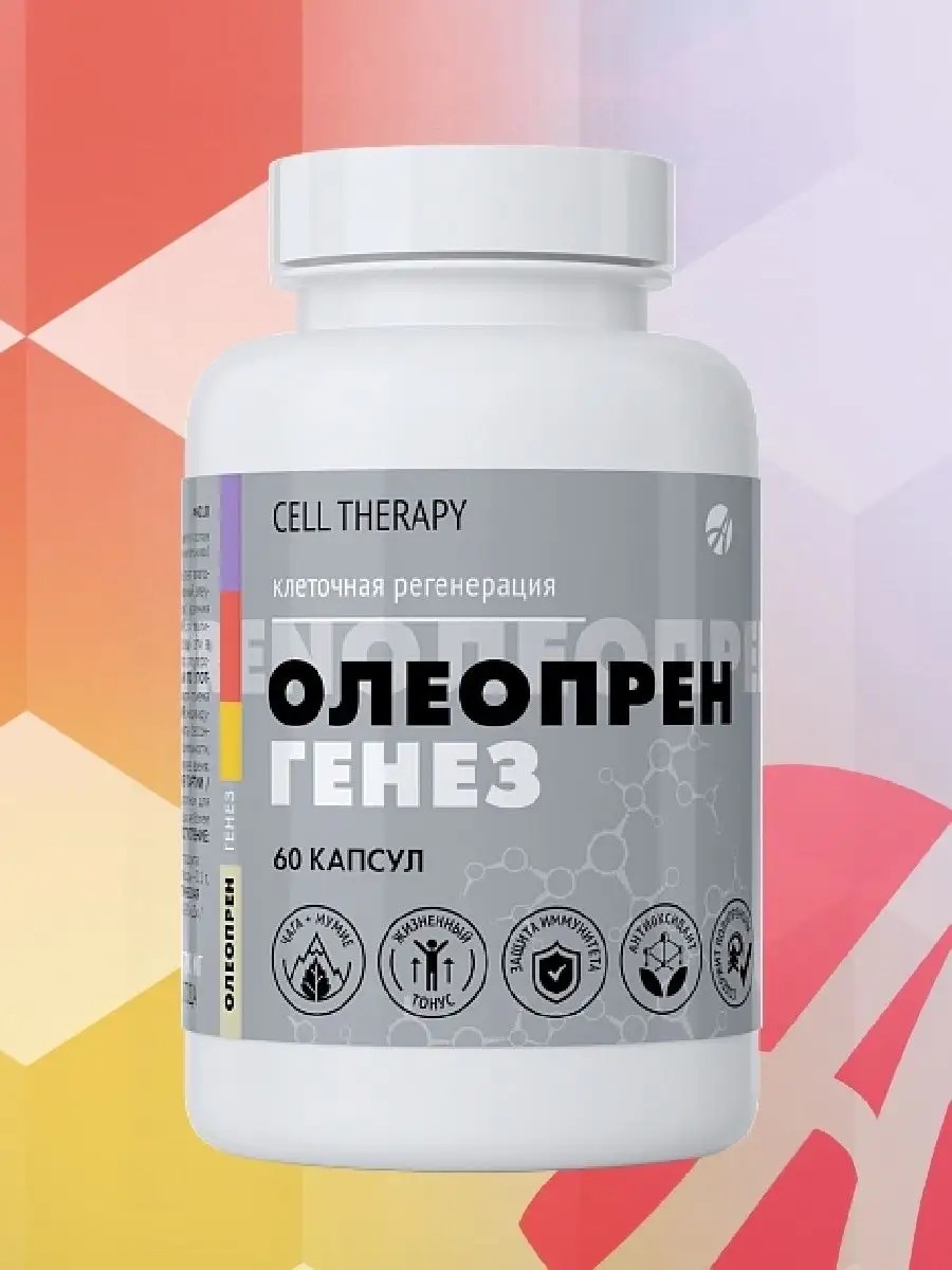 Олеопрен Генез, 60 капс. Общеукрепляющий комплекс с полипренолами. Свойства: обладает системным действием: общеукрепляющим, адаптогенным, тонизирующим. Усиливает естественную антиоксидантную защиту организма. Улучшает процессы регенерации после переломов. Может применяться в составе программ для бронхо-легочной системы. Повышает устойчивость к высоким физическим нагрузкам. Полипренолы пихты сибирской стабилизируют клеточные мембраны, улучшают процессы усвоения биологически активных веществ. Мумие активизирует процессы регенерации, оказывает иммуномодулирующее и противовоспалительное действие. Маточное молочко увеличивает сопротивляемость организма инфекциям.Экстракт чаги оказывает общеукрепляющее действие, усиливает защиту клеток от свободных радикалов. Экстракты элеутерококка и лимонника. обладают тонизирующим действием, улучшают обмен веществ. Рекомендации по употреблению: взрослым по 1 капсуле 1-2 раза в день. Курс приёма 1 месяц.