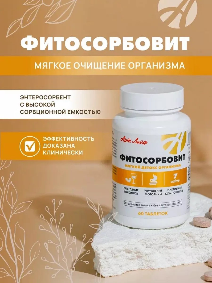 «Фитосорбовит» – энтеросорбент, созданный на основе специально модифицированного низкоэтерифицированного высококачественного цитрусового пектина. Обладая повышенной сорбционной способностью, в малых дозах способен активно связывать и прочно удерживать в своей структуре экзогенные и эндогенные токсины, соли тяжелых металлов, радионуклиды. Обогащен различными видами неперевариваемой клетчатки (микрокристаллическая целлюлоза), комплексом молочнокислых бактерий, сухим экстрактом свеклы, плодами шиповника, цветками пижмы. Улучшает работу желчевыделительной системы.