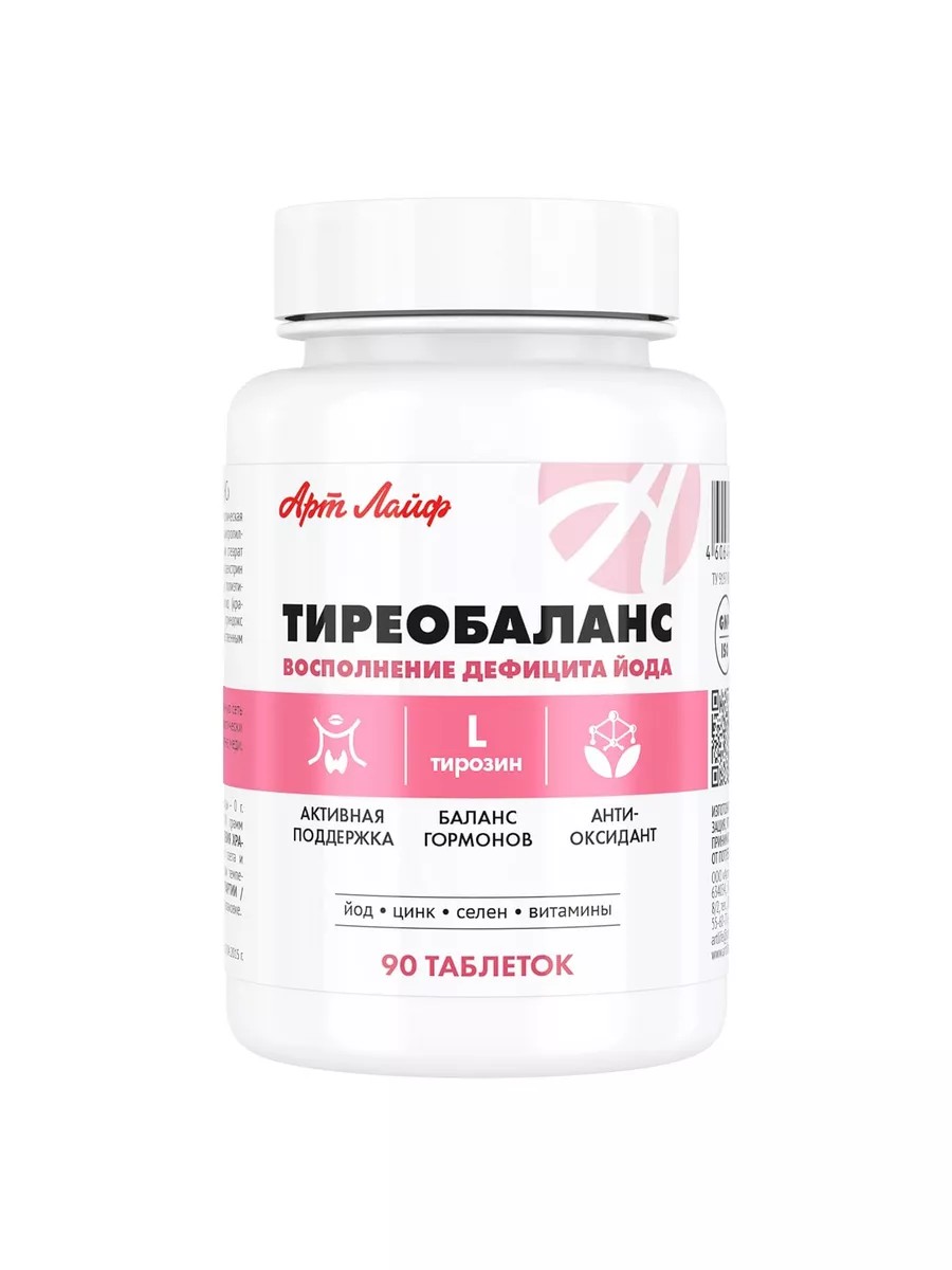 Тиреобаланс обеспечивает комплексное воздействие на метаболизм щитовидной железы, синтез и баланс тиреоидных гормонов, обеспечивает защиту клеток от окислительного стресса и витаминноминерального голодания.Для полноценной деятельности щитовидной железы необходим йод. Этот микроэлемент контролирует обмен веществ, повышает иммунитет и активность некоторых половых гормонов. Йод способствует нормальному росту, улучшает умственную способность, делает нашу кожу, зубы, волосы и ногти здоровыми. Тирозин также является важным субстратом для нормальной работы щитовидной железы и профилактики ее гипофункции.Селен и цинк защищают щитовидную железу от повреждающего действия свободных радикалов, которое может привести к гипотиреозу. Медь, марганец и кобальт являются кофакторами ферментов участвующих в образовании гормонов щитовидной железы, а также в транспорте йода.