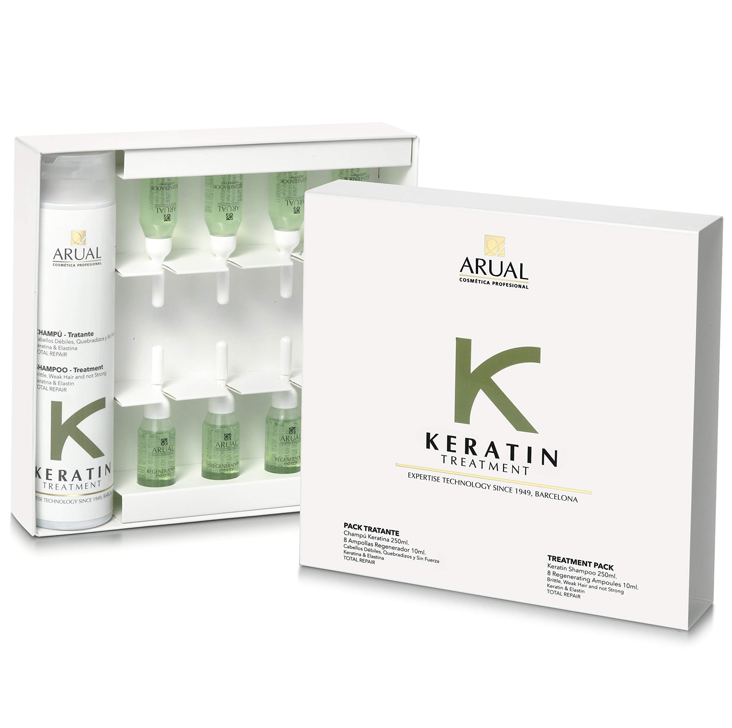 : Arual Keratin Shampoo Pack 251ml 8 Ampoules. Ingredients: Keratin Directions: Wash hair with Keratin Shampoo. Apply conditioner or mask if desired. Towel dry hair and apply one ampoule to the scalp, massaging for two minutes with fingertips in a circular motion. Press the cap first to open the ampoule. DO NOT RINSE. Repeat 2 to 3 times per week. See more