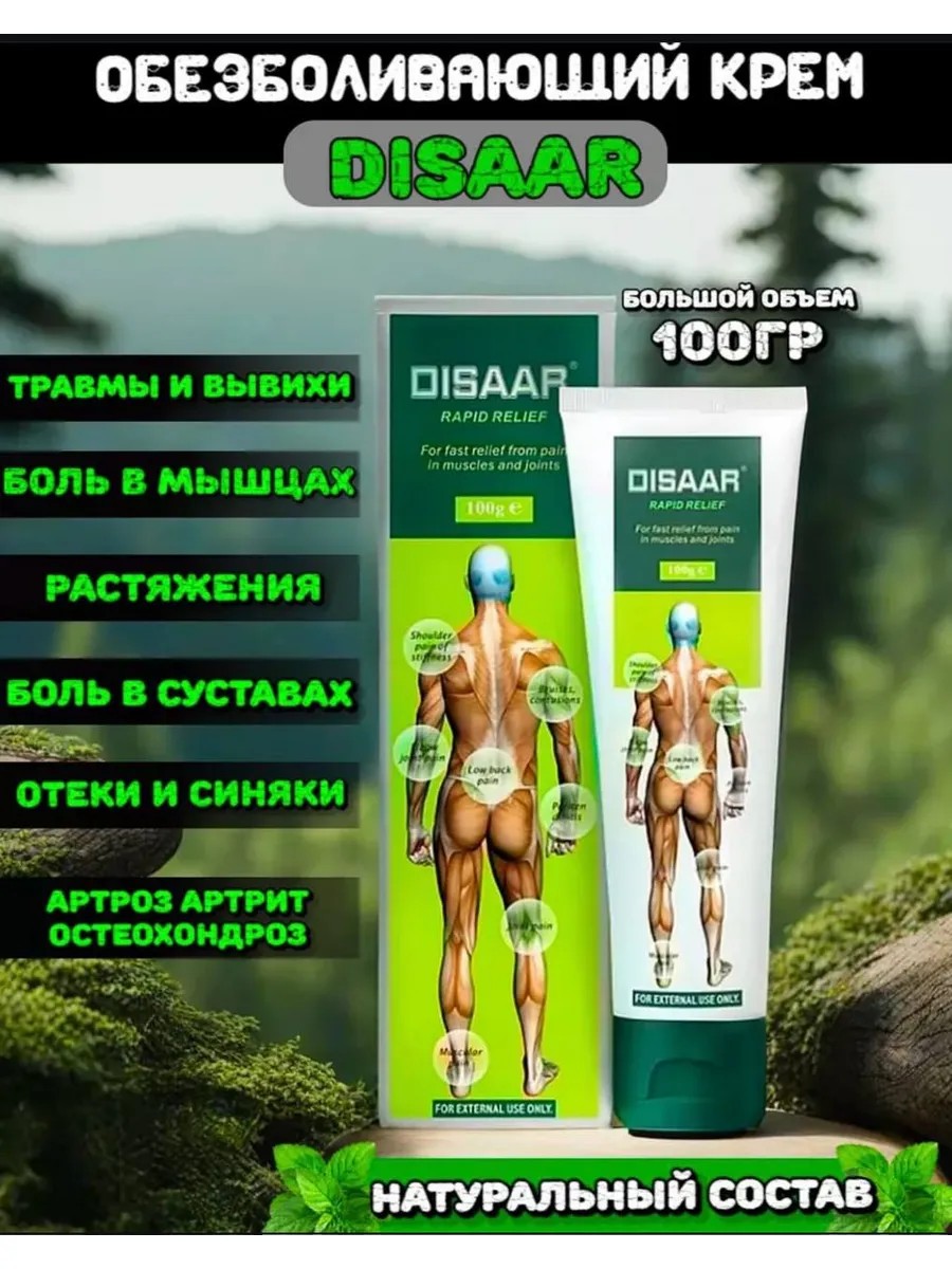 Disaar warming, anti-inflammatory ointment, Chinese. Pain-relieving, warming ointment - Disaar cream, your first aid for problems associated with joints and muscles. Disaar pain-relieving gel for pain, bruises and bruises is an ideal assistant for household and sports injuries. Warming ointment for elbow pain, chondrosis will help get rid of swelling and inflammation. Joint ointment for knee pain for the body helps eliminate pain, improve blood flow in painful areas, generally improve the condition of joints and muscles and relieve leg pain. This decongestant and anti-inflammatory cream is excellent for muscle pain, back pain and joint pain. It is a strong and effective painkiller that stimulates blood circulation. The pain-relieving balm is indicated for joint and muscle pain; osteochondrosis; arthritis; arthrosis; radiculitis; bruises and injuries; Sprains, lumbar disc herniations, cervical spondylosis, gout, and neuralgia. This pain-relieving ointment is effective in relieving back and joint pain, helping to relax pinched muscles, improve cartilage metabolism, relieve spasms and muscle strain, reduce swelling, and restore joint mobility. This warming cream for muscle or joint pain helps with increased joint strain, injuries and strains, fractures, bruises, dislocations, and age-related changes. This pain-relieving cream is also effective for neck and bone pain. If you suffer from back pain, muscle pain, joint pain, leg pain, arm pain, or if you have suffered an injury, bruise, dislocation, or strain, Disaar Gel will be your reliable assistant.