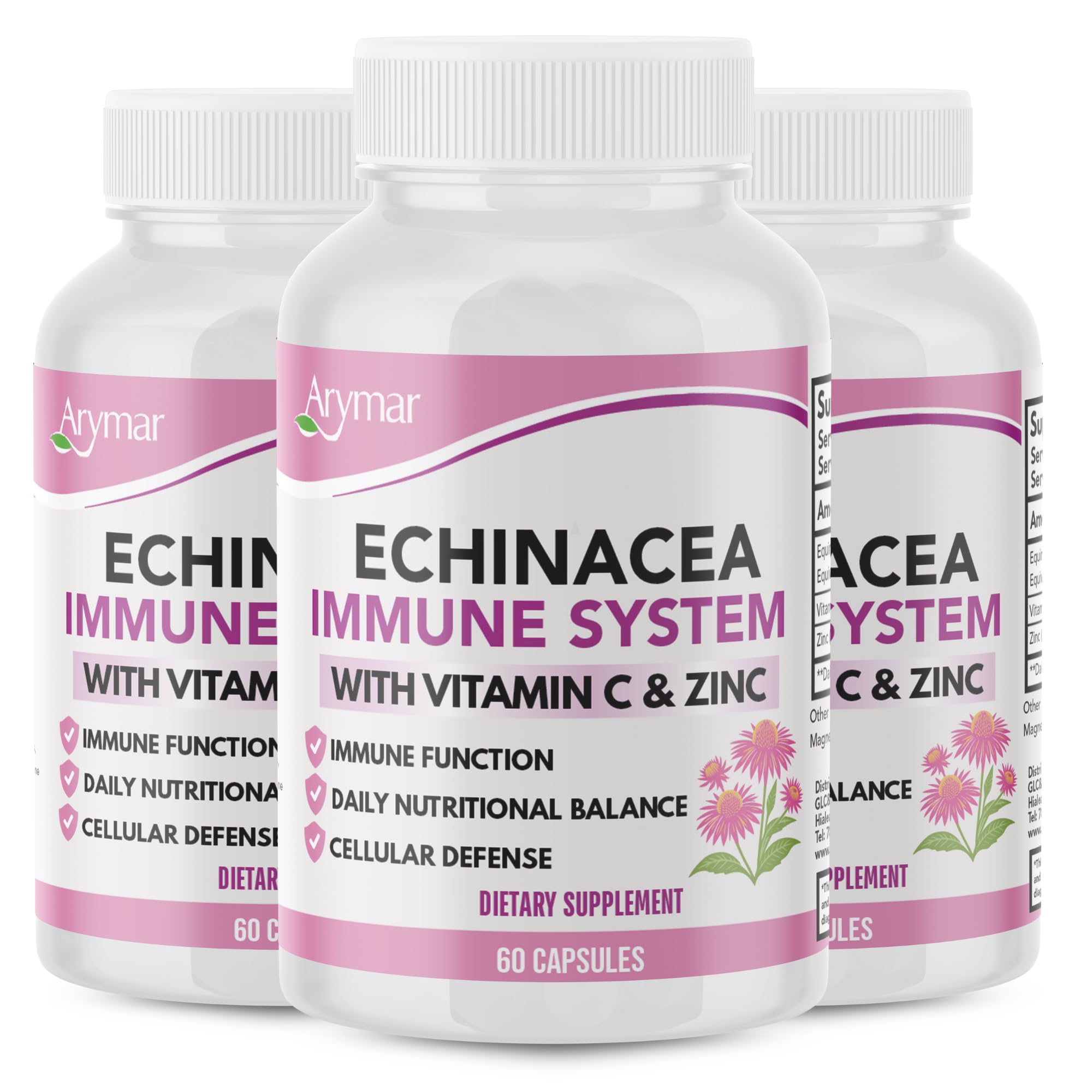 Arymar Echinacea with Vitamin C and Zinc Daily Wellness 60 Capsules (3 Pack)