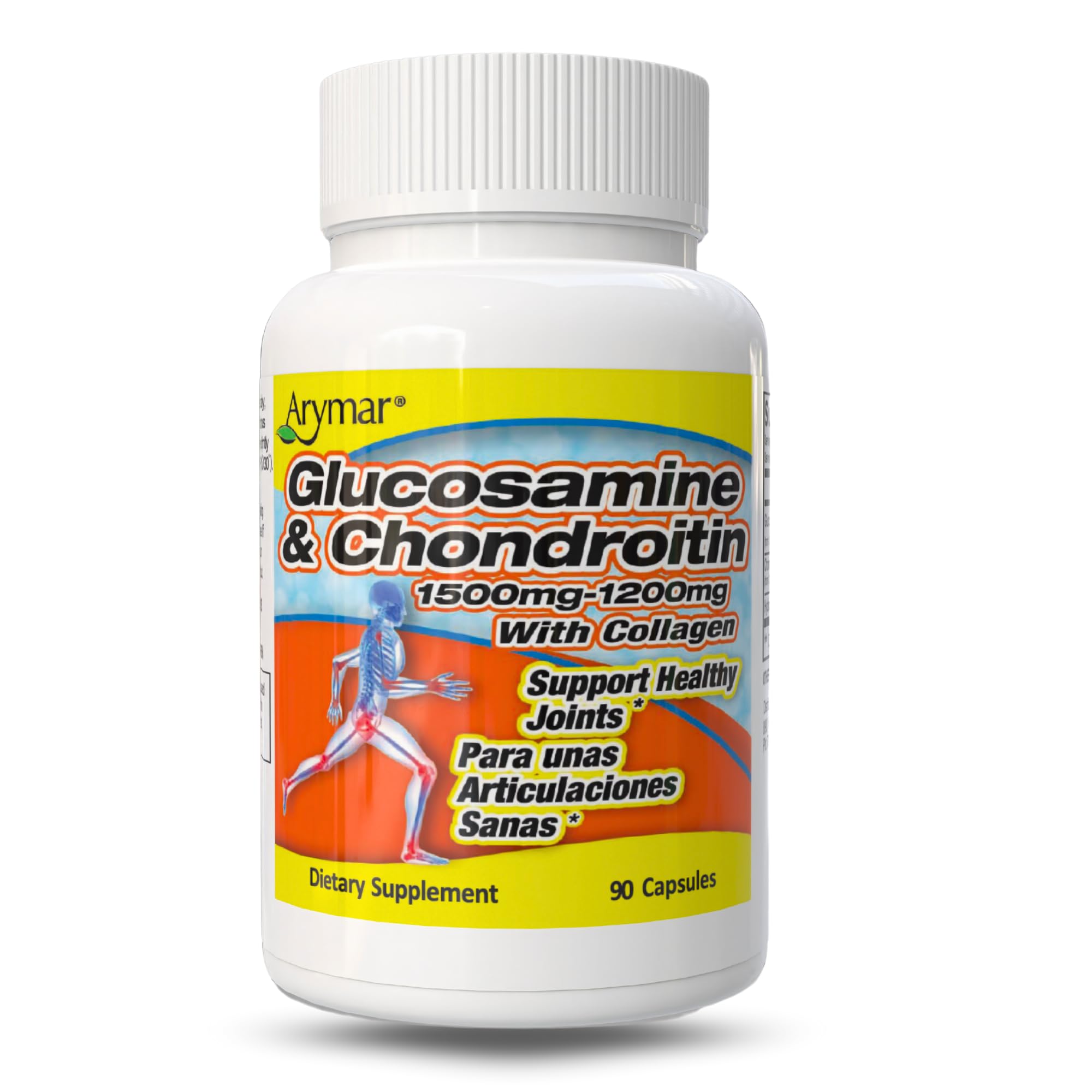 Trusted Brand, Guaranteed Results: Backed by ARYMAR's commitment to excellence, our Glucosamine Chondroitin with Collagen supplement is manufactured with strict quality standards to ensure safety and efficacy, providing you with confidence in every capsule. Package content: Contains 90 capsules, providing a 45-day supply. Quality assured: Manufactured by Arymar, known for high-quality natural supplements. Easy to incorporate: Convenient capsule form for daily supplementation. Includes collagen: Contains collagen, an essential protein in cartilage and connective tissues. Comprehensive joint support: Formulated with 1500 mg of glucosamine and 1200 mg of chondroitin per serving, ingredients known for their role in maintaining joint health.