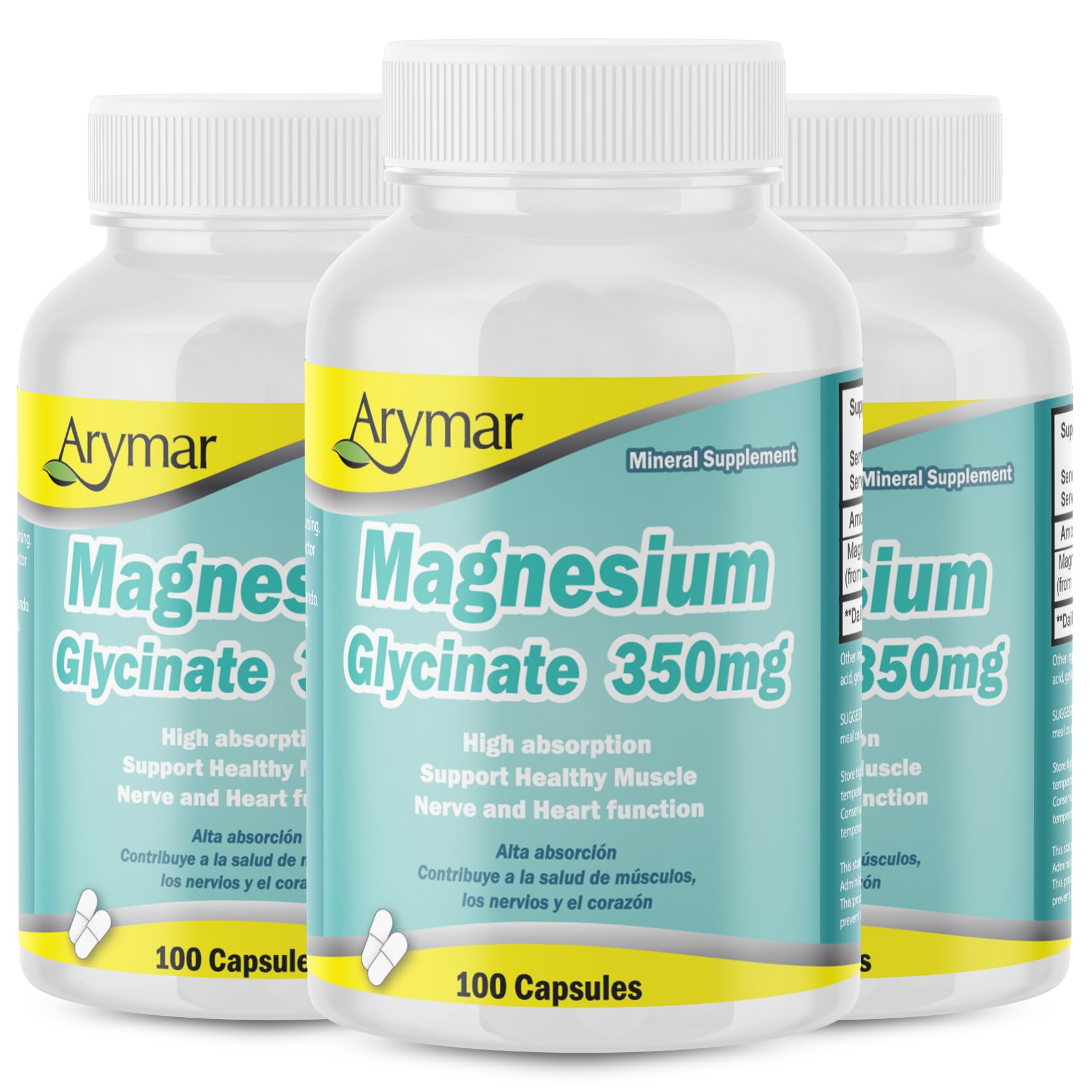 Arymar Magnesium Glycinate 350mg 100 Capsules (3 Pack)