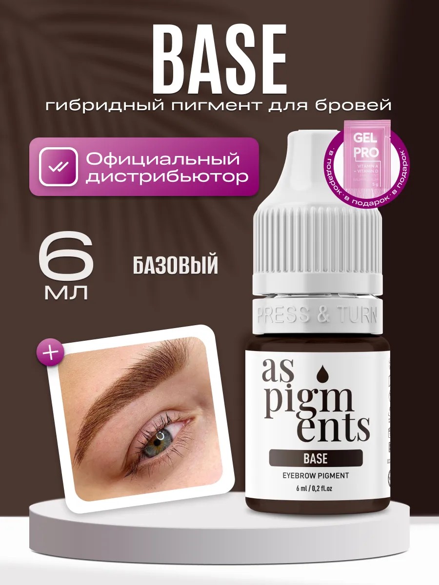 AS company by Alina Shakhova Пигмент Base 6 мл от Алины Шаховой предназначен для создания перманентного макияжа век и бровей. Пигмент Base (База) — это самый оптимальный нейтрально-коричневый цвет, оттенок подходит для различных типов внешности, что делает его универсальным выбором для мастеров.