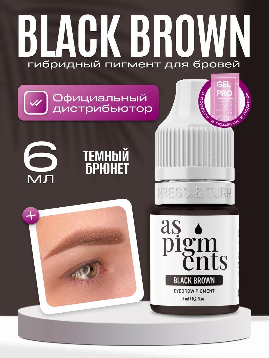 AS Company by Alina Shakhova Black Brown Pigment 6 ml by Alina Shakhova is designed for creating permanent makeup for the eyelids and eyebrows. Black Brown (Dark Brunette) is a black-brown pigment on a cool red-black base. The shade is suitable for various skin types, making it a universal choice for professionals.