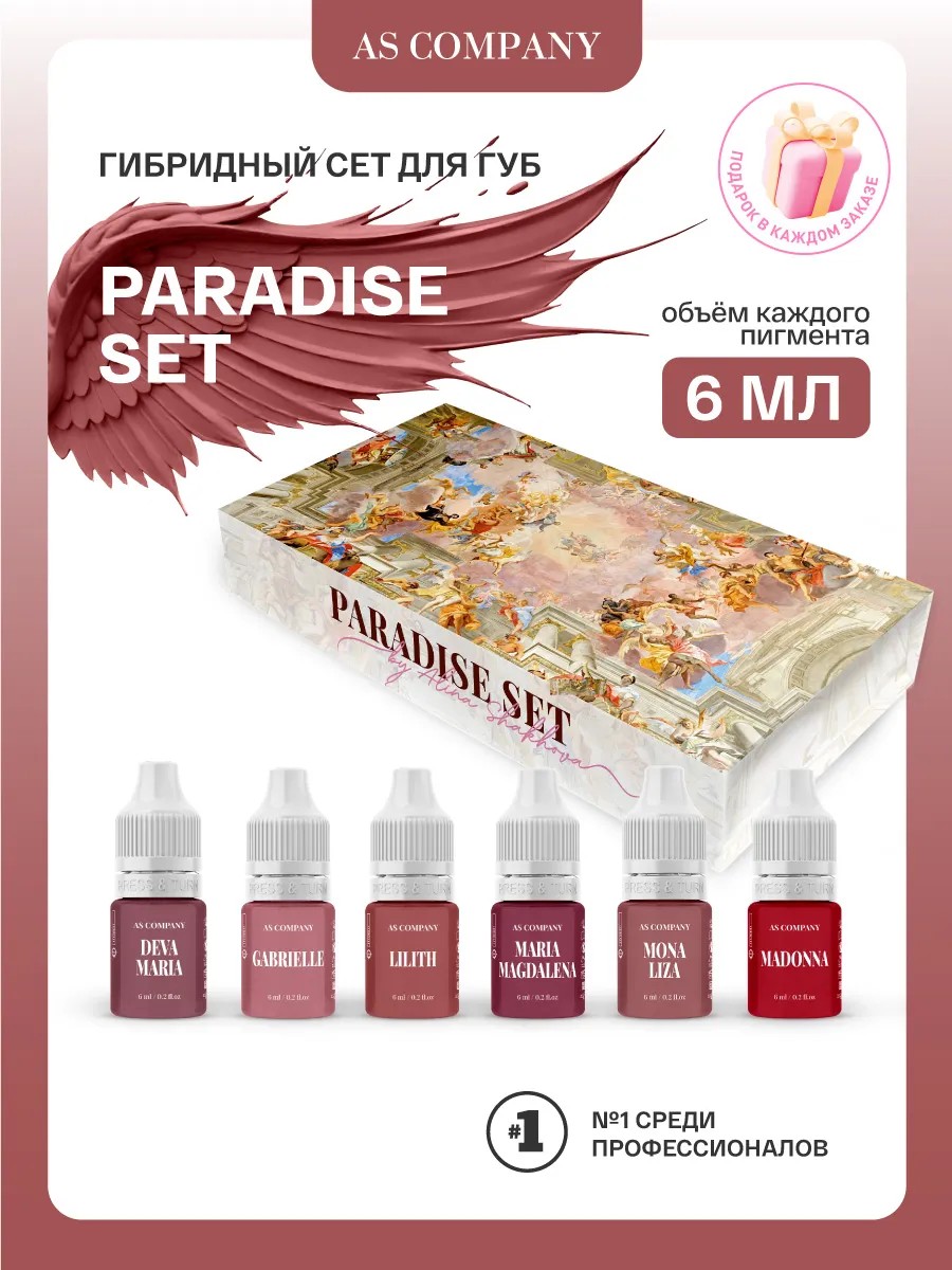 AS COMPANY BY ALINA SHAKHOVA AS Сет Пигментов Парадайс Шаховой для татуажа губ 6шт по 6мл
