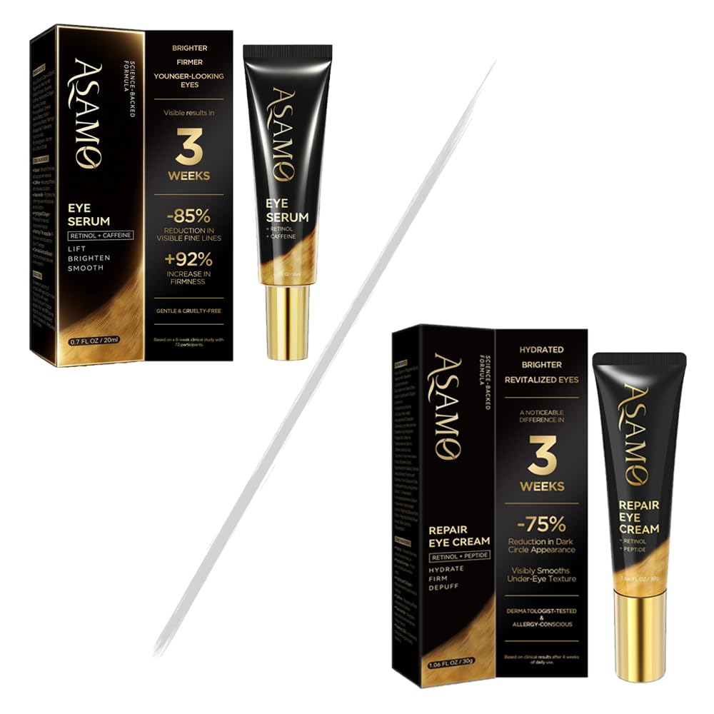 ASAMO Retinol & Peptides Under Eye Kit | Daily Hydrating Serum + Anti-Wrinkle Cream for Puffy Eyes