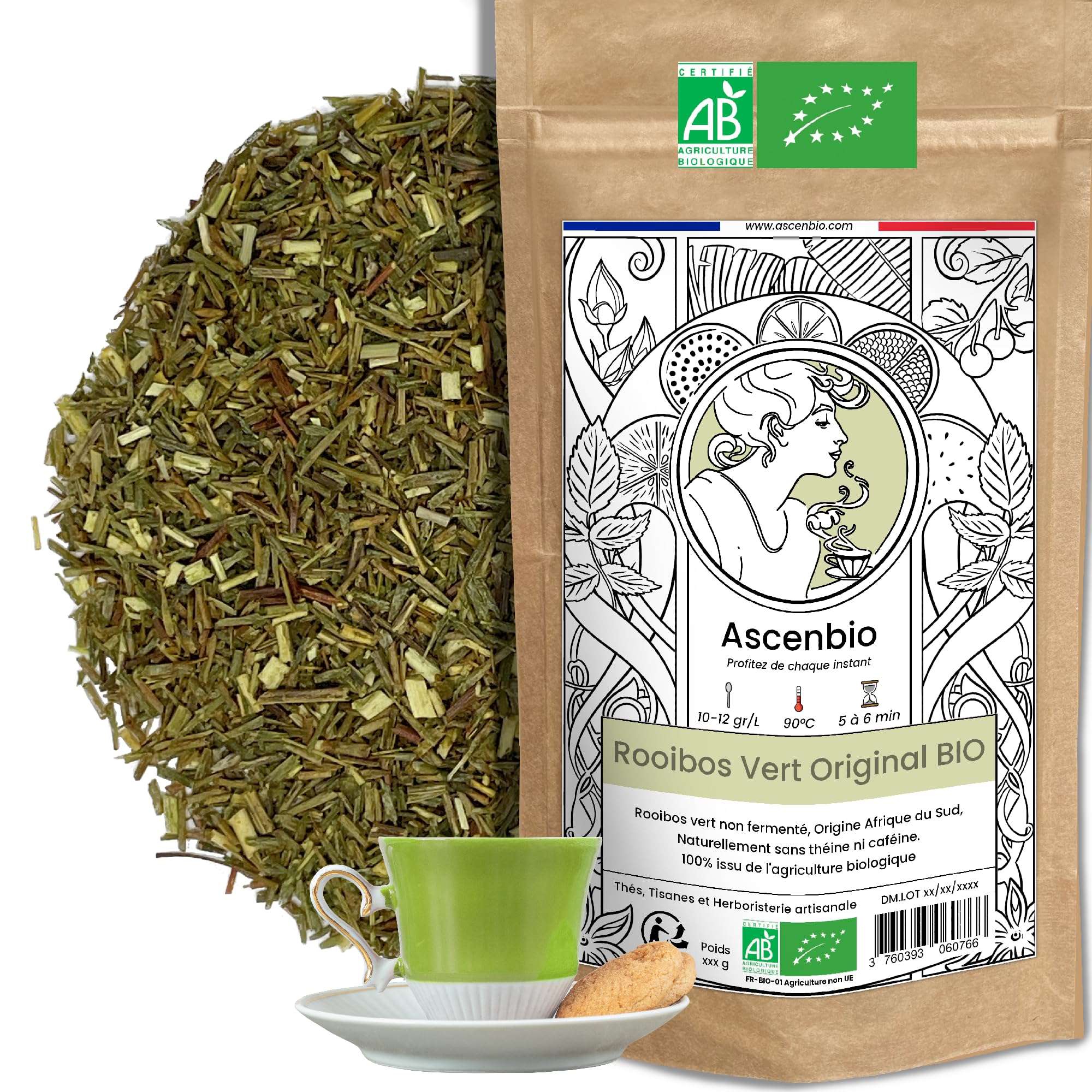 Ascenbio ? Rooibos Vert BIO ? Tisane Soir Rooibos non fermenté ? vrac 180g ? Préparé et conditionné en France ? Emballage biodégradable