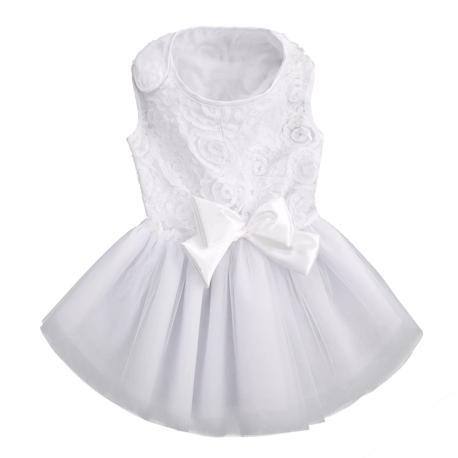 Properties: 1. The dog dress is made of high -quality material, it can be worn skin -friendly.2. The pet dress is decorated with top fabric and pearls, it is so shiny and beautiful.3. The princess skirt has 6 layers of yarn, and the skirt is large and fluffy.4. Princess dress perfect for everyday life, weddings, birthdays and photos.5. Magic sticker makes the skirt easy to put on and off.Specification: Material: polyester fabric.Color white.Season: spring, summer, autumn.Cleaning care: Hand wash is recommended, with machine wash, please distinguish the dark colors.Suitable for: chihuahua, poodle, poodle, dwarfspitz, Yorkshire Terrier, Bichon Frisé, Cocker Spaniel, etc. Size: XXS: back length: 22 cm;Breast size: 28–35 cm;Neck scope: 21–26 cm;Size XS: back length: 28–35 cm;Size XS: Back length: 27 cm.7 cm; chest: 13 35–40 cm;Neck: 26–31 cm;S: back length: 32 cm;Breast size: 40–46 cm;Neck scope: 31–36 cm;M: back length: 14.56 cm.37 cm;Breast size: 46–52 cm;Neck: 36–42 cm;L: Back length: 43 cm;Breast size: 52–60 cm;Neck scope: 42–50 cm;Tips: 1. that you confirm the pet neck circumference, chest size and back length before ordering.2. Make sure to leave two fingers between the tape and the dog's neck.3. If there is a difference between the neck and chest, please follow the breast size.Scope of delivery: 1 x dog dress occasions: The puppy dress is ideal for everyday life, weekend parties, wedding days, birthday parties, Valentine's Day, Halloween, Christmas, New Year's Eve parades and photo shoots.Size: The beautiful wedding dress is suitable for small to medium dogs, the color is elegant and it is so beautiful for female dogs.The size table shows the actual size of the dress.Please measure the size of your pet before buying.If one of the dimensions ""lies between"" two sizes or your dog is still growing, a larger size is recommended.Simply put on and take off: there is a magical sticker around the neck for easy tightening and taking off.In addition, the belly has a rubber band that can adjust to their pets.The hundred has 6 layers of yarn and the skirt is large and fluffy.You don't have to worry about your lower body.Exquisite design: The wedding princess dress is embroidered with rose tip and pearl is decorated, it is so shiny and beautiful that your dog will be the most attractive.In addition, the cute and elegant loop accessories decorate your pet into a beautiful bride and makes your pet dreamy and look sweet.Material: The dog dress embroidered with lace is made of soft polyester fabric, it is breathable and easy to wear for your dog.It is skin -friendly to your pet. Eigenschaften: 1. Das Hundekleid ist aus hochwertigem Material, es ist hautfreundlich zu tragen. 2. Das Haustierkleid ist mit Spitzenstoff und Perlen verziert, es ist so glänzend und schön. 3. Der Prinzessinnenrock hat 6 Lagen Garn, und der Rock ist groß und flauschig. 4. Prinzessinnenkleid perfekt für den Alltag, Hochzeiten, Geburtstage und Fotos. 5. Magischer Aufkleber macht den Rock einfach an- und auszuziehen. Spezifikation: Material: Polyestergewebe. Farbe: Weiß. Jahreszeit: Frühling, Sommer, Herbst. Reinigungspflege: Handwäsche wird empfohlen, bei Maschinenwäsche, bitte unterscheiden Sie die dunklen Farben. Geeignet für: Chihuahua, Pudel, Pudel, Zwergspitz, Yorkshire Terrier, Bichon Frisé, Cocker Spaniel, etc. Größe: XXS: Rückenlänge: 22 cm; Brustumfang: 28–35 cm; Halsumfang: 21–26 cm; Größe XS: Rückenlänge: 28–35 cm; Größe XS: Rückenlänge: 27 cm. 7 cm;Brust:13 35–40 cm; Hals: 26–31 cm; S: Rückenlänge: 32 cm; Brustumfang: 40–46 cm; Halsumfang: 31–36 cm; M: Rückenlänge: 14,56 cm. 37 cm; Brustumfang: 46–52 cm; Hals: 36–42 cm; L: Rückenlänge: 43 cm; Brustumfang: 52–60 cm; Halsumfang: 42–50 cm; Tipps: 1. dass Sie das Haustier bestätigen Halsumfang, Brustumfang und Rückenlänge vor der Bestellung. 2. Achten Sie darauf, zwei Finger zwischen dem Maßband und dem Halsumfang des Hundes zu lassen. 3. Wenn es einen Unterschied zwischen Hals und Brust gibt, folgen Sie bitte der Brustgröße. Lieferumfang: 1 x HundekleidAnlässe: Das Welpenkleid ist ideal für den Alltag, Wochenendpartys, Hochzeitstage, Geburtstagsfeiern, Valentinstag, Halloween, Weihnachten, Silvesterparaden und Fotoshootings. Größe: Das schöne Hochzeitskleid eignet sich für kleine bis mittlere Hunde, die Farbe ist elegant und es ist so schön für weibliche Hunde. Die Größentabelle zeigt die tatsächliche Größe des Kleides. Bitte messen Sie die Größe Ihres Haustiers vor dem Kauf. Wenn eine der Maße ""zwischen"" zwei Größen liegt oder Ihr Hund noch wächst, wird eine größere Größe empfohlen. Einfach an- und ausziehen: Es gibt einen magischen Aufkleber um den Hals zum einfachen An- und Ausziehen. Darüber hinaus hat der Bauch ein Gummiband, das Anpassungen an Ihren Haustieren vornehmen kann. Der Hunderock hat 6-Lagen Garn, und der Rock ist groß und flauschig. Sie brauchen sich keine Sorgen darüber zu machen, dass Ihr Unterkörper gefesselt wird. Exquisites Design: Das Hochzeitsprinzessin Kleid ist mit Rosenspitze bestickt und Perle verziert, es ist so glänzend und schön, dass Ihr Hund der attraktivste sein wird. Außerdem verwandelt die niedliche und elegante Schleife Accessoires Verzierung Ihr Haustier in eine schöne Braut und lässt Ihr Haustier verträumt und süß aussehen. Material: Das mit Spitze bestickte Hundekleid besteht aus weichem Polyestergewebe, es ist atmungsaktiv und leicht für Ihren Hund zu tragen. Es ist hautfreundlich zu Ihrem Haustier.ASENKU HundeKleid Haustier Hochzeitskleid Prinzessin Spitze Welpe Geburtstag Party Outfit Formelle Kleidung Mädchen für kleine mittlere Hunde Katzen Weiß M M Weiß