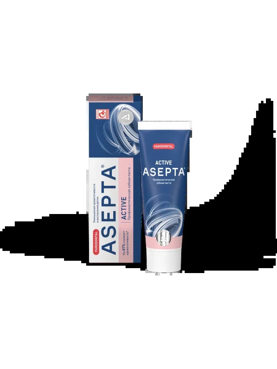 Asepta Parodontal Active toothpaste is a preventative product designed to strengthen teeth and maintain gum health, especially for people at risk for oral diseases. Its unique formula includes a multi-system of natural extracts that help strengthen gums and reduce bleeding.