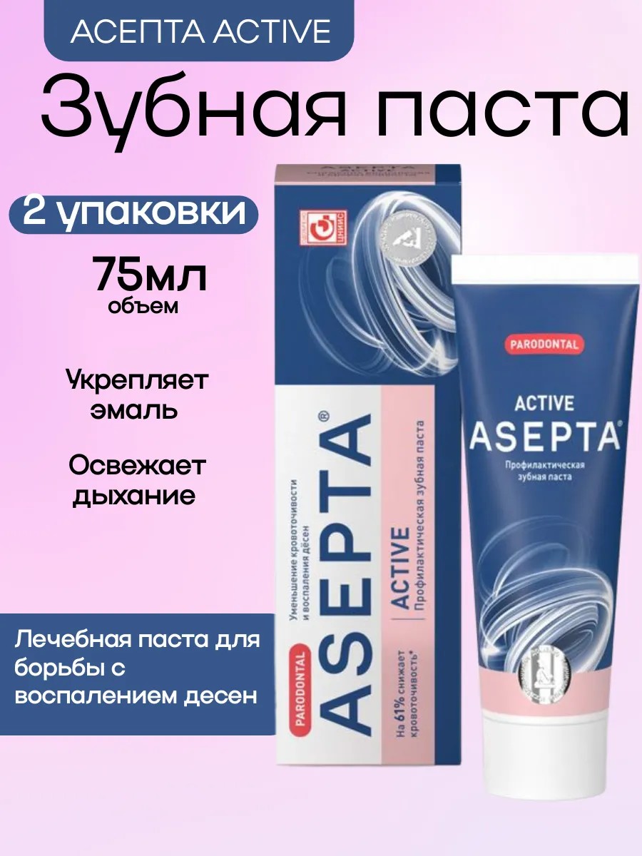 | Комплектация | 2 упаковки; Зубная паста Асепта Актив 75мл |