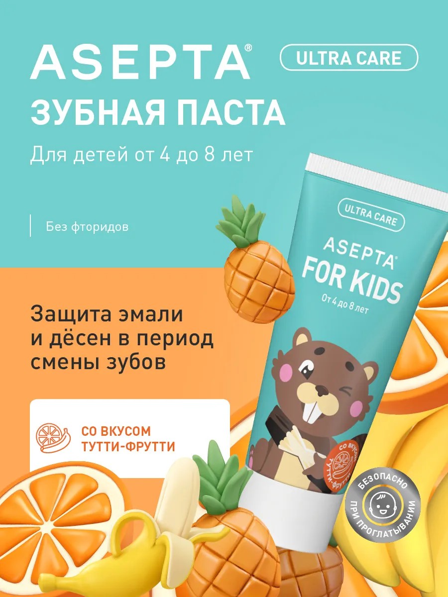 Асепта Зубная паста детская 4-8 лет ASEPTA KIDS тутти-фрутти, 50 мл
