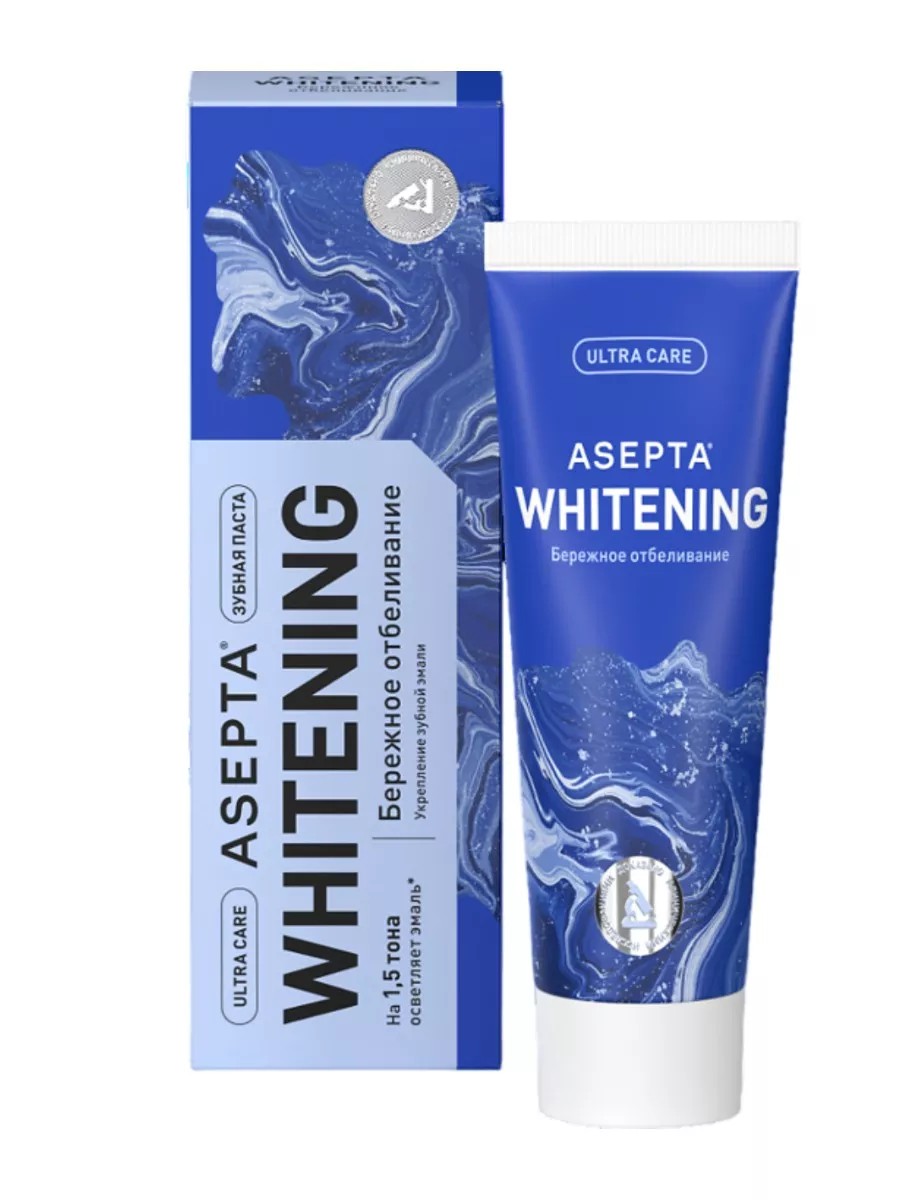 | Комплектация | 1 упаковка; зубная паста Асепта Plus, бережное отбеливание |