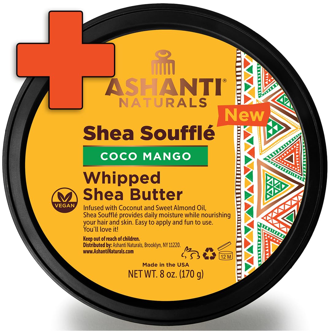 African Pride - Our pure shea butter natural hair products for black women and body skin care products are sourced from Ghana, Africa. Empower the women of Ghana to support themselves and their families honorably. Convenient - Unrefined shea butter has never been easier. Carefully processed to provide maximum nutrients for the ultimate in shea butter hair products, face care and body moisturizers. Whipped and creamy for easy, smooth application. Multifunctional - Raw African Shea Butter has many uses. Effective moisturizer for dry skin, body butter for women, face moisturizer for face care, haircare, heals cuts and scrapes, reduces wrinkles and stretch marks, strengthens nails and soothes skin conditions. Can be used as is or as base for DIY creams. Natural Protection - Raw white shea butter contains naturally occurring fatty acids and phytonutrients which protect skin and hair from UV damage, reduce inflammation, replace natural oils and provides relief from dry hair and skin conditions. Bundle - Naturally Beautiful - Bring out your body's natural beauty with Ashanti Naturals Shea Soufflé. 8 oz of natural shea butter infused with coconut and sweet almond oil with an added feminine fragrance for the ultimate experience.