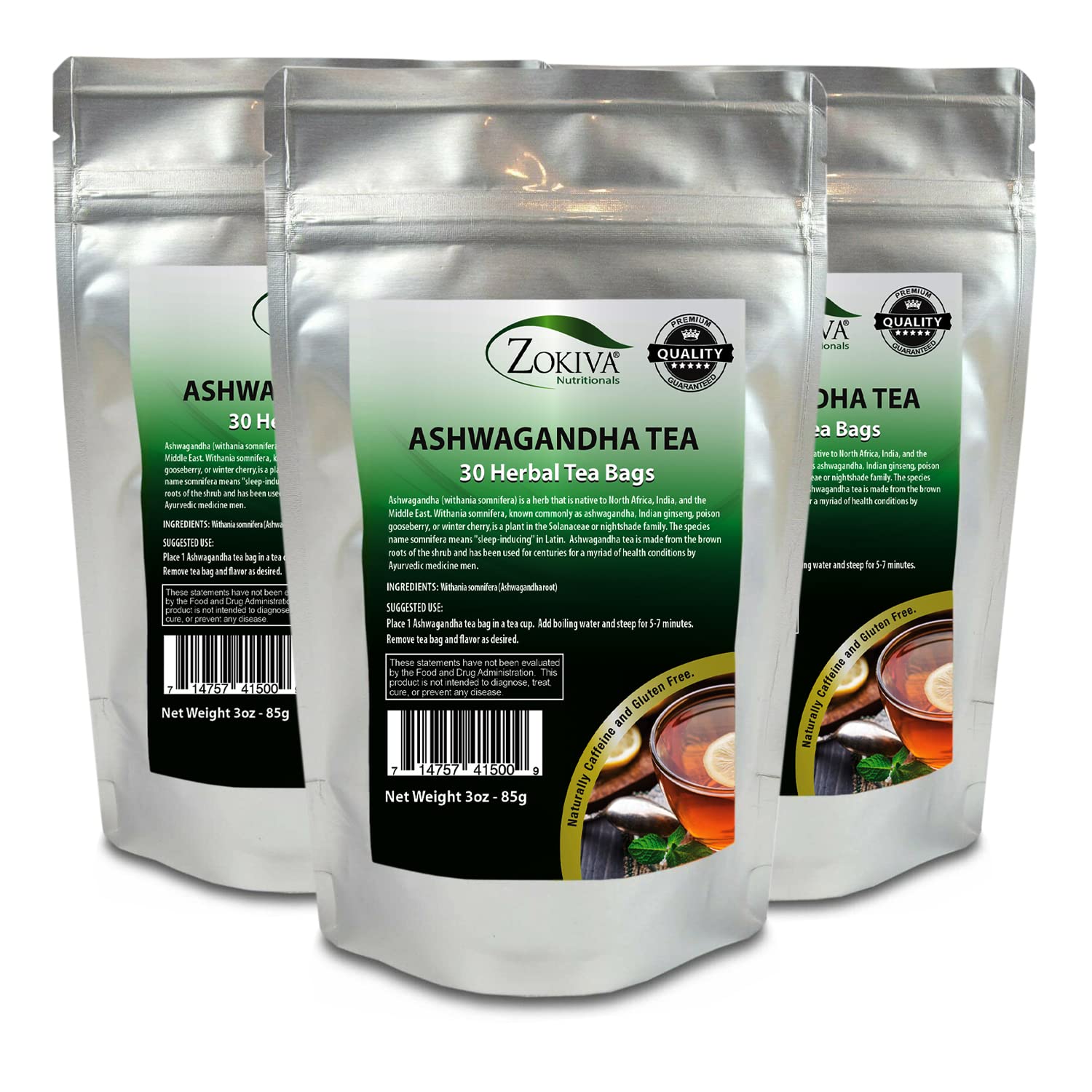Ashwagandha Tea Organic 3-Pack (90 Bags) Premium Quality 100% Pure Root -Withania Somnifera