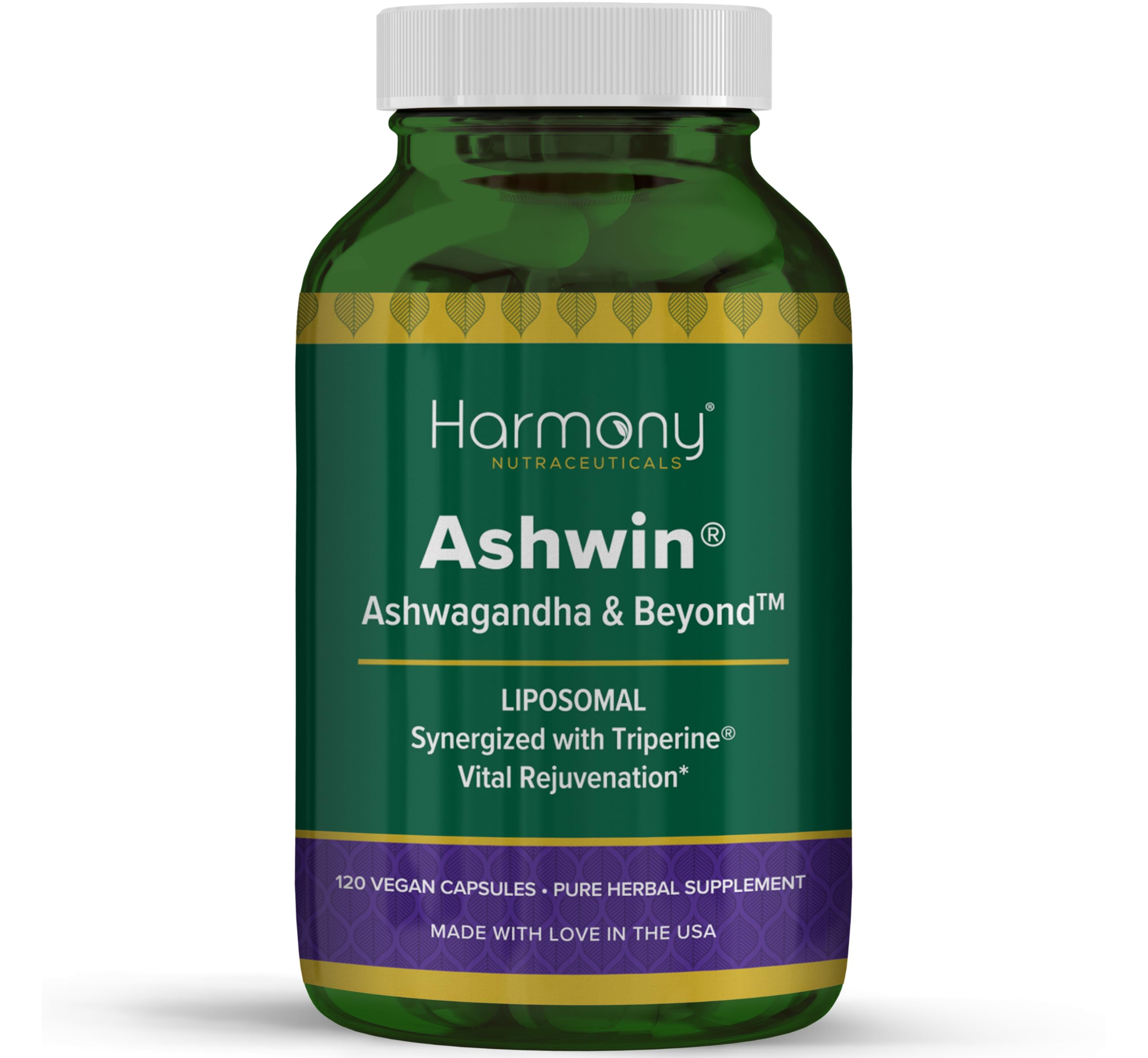 Ashwin is a clinical-grade, liposomal Ashwagandha formula designed to support stress resilience, energy, and overall vitality. Featuring a high-potency Ashwagandha root extract, it is synergized with Triperine, our proprietary blend of ginger, black pepper, and long pepper extracts, to help enhance absorption and bioavailability. Crafted for modern wellness, Ashwin supports physical endurance, mental clarity, focus, and relaxation as part of a healthy lifestyle.These statements have not been evaluated by the Food and Drug Administration. This product is not intended to diagnose, treat, cure, or prevent any disease. Harmony's team of expert scientists, chemists, and pharmacists supports synergistic formulation design, product development, and stringent quality control. Harmony Nutraceuticals products are made with care in Oklahoma, USA, in our own GMP-certified manufacturing facility. Every supplement is independently retested in the USA by a third-party laboratory for heavy metals, microbial contamination, and purity. Our Ayurvedic products are formulated and produced by Dr. Amit Gumman, one of the foremost practitioners of Ayurveda in North America. He collaborates with a multidisciplinary team of Ayurvedic, Naturopathic, and Allopathic physicians across India and the United States, and works closely with a trusted network of organic and biodynamic farmers and sustainable harvesters to ensure quality, integrity, and authenticity from source to formula. Clean, Plant-Based Formula – Pure herbal supplement no unnecessary fillers crafted for daily wellness and Ayurvedic balance. . Liposomal Delivery – Liposomal format designed to help protect actives and support uptake, maximizing value per capsule. . Clinical Grade Made in USA – Formulatedand produced by Dr. Gumman 120 vegan capsules GMP-Certified quality and purity-focused in-house manufacturing. Enhanced Absorption with Triperine – Synergized with Triperine (ginger, black pepper, long pepper extracts) to help support absorption and bioavailability. . Calm Focus Mental Clarity – Helps support clear thinking, concentration, and balanced mood without jitters or crash. . Energy Vitality – Traditionally used to support healthy energy, stamina, and physical endurance—ideal for busy, active lifestyles. . Stress Resilience Calm Support – High-potency, liposomal Ashwagandha root extract designed to support the body's healthy stress response and promote calm balance. .