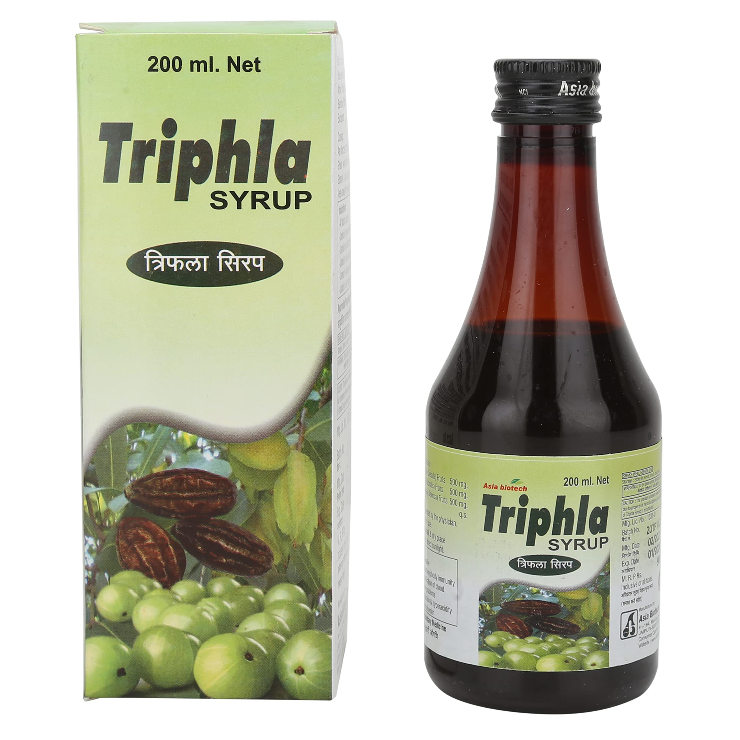 Asia Biotech Triphala Syrup | A Natural Laxative Useful for Improving Body Immunity Blood Purification Skin Problems Digestion & Hyperacidity Liver Disorders - 200ml x 2 Pcs (Pack of 2)
