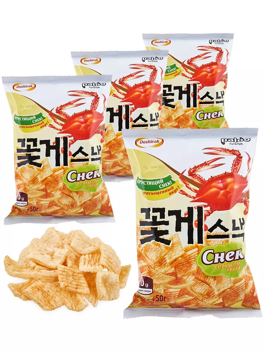 Package contentsDoshirak chips with crab flavor, 4 pcs x 50g, Korea