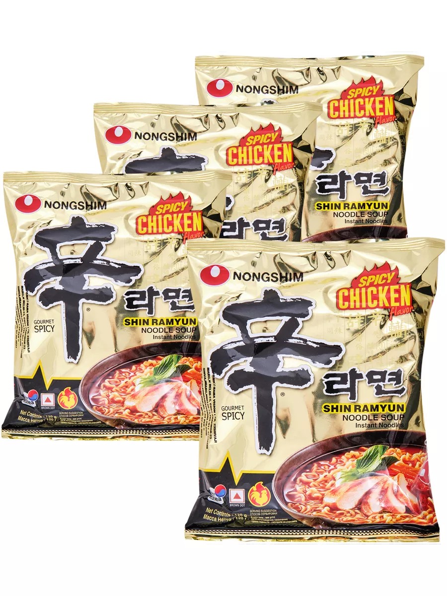 Азиатская еда Лапша Нонгшим Шин Рамен с острой курицей, 4шт х 120г, Корея