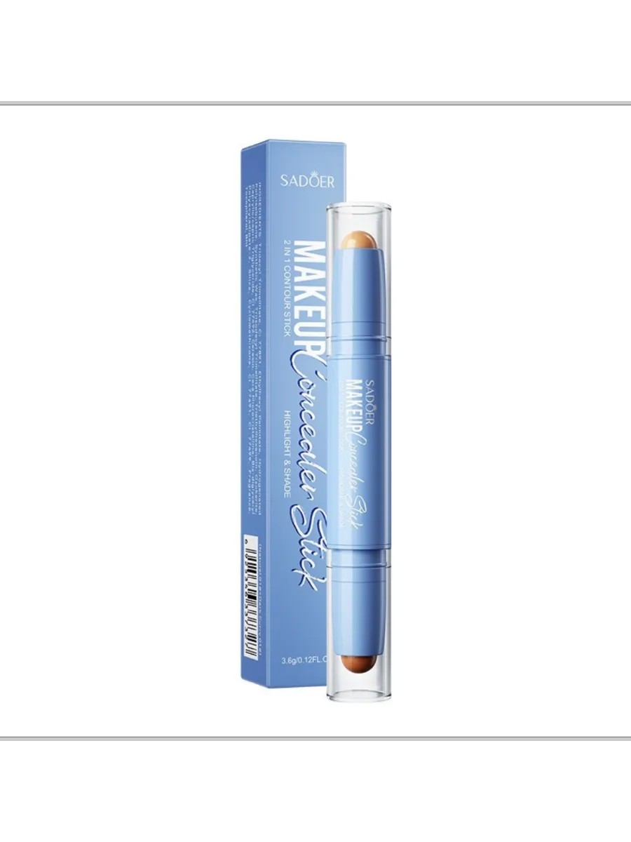 Wonder Stick is a two-in-one highlighter and concealer. We've combined facial contouring tools into a single stick. You don't need to be a professional makeup artist to correct your facial features. Whether you need to highlight or darken, the dual-ended pencil follows your hand, gliding smoothly over your skin thanks to its creamy texture. This texture also provides easy blending for a natural look. Coverage is easily adjusted by increasing or decreasing pressure. Both working areas are formulated with candelilla wax—a gentle product that won't dry out your skin. This dual-ended contouring stick isn't just convenient to use; it speeds up your makeup routine when time is of the essence. Use the highlighter to highlight the bridge of your nose, the center of your forehead/chin, above your lips, and along the tops of your cheekbones. Use the dark concealer to highlight the outer areas of your chin, forehead, and sides of your nose, and to darken the skin under your cheekbones and along your hairline. Blend with a brush or sponge. Face Concealer