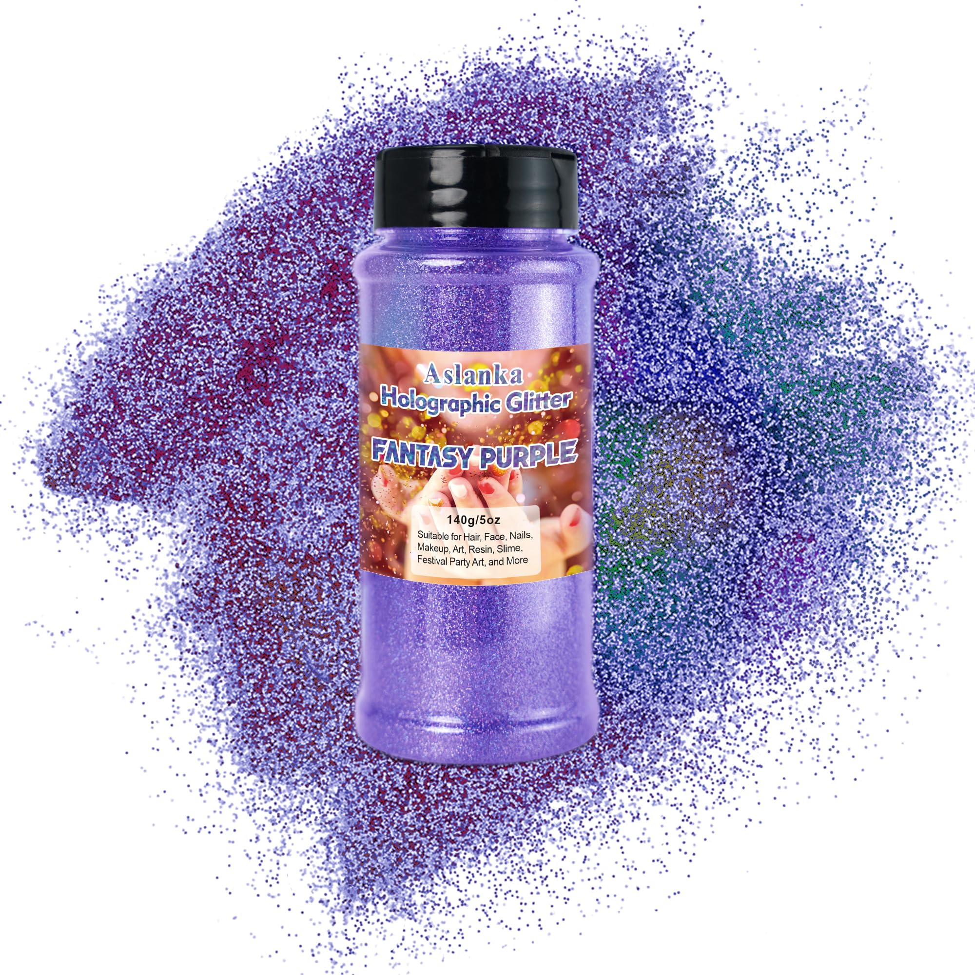 Aslanka Aslanka 140g of fantastic light purple rainbow glitter holographic powder for manicure epoxy resin eyeshadow and face